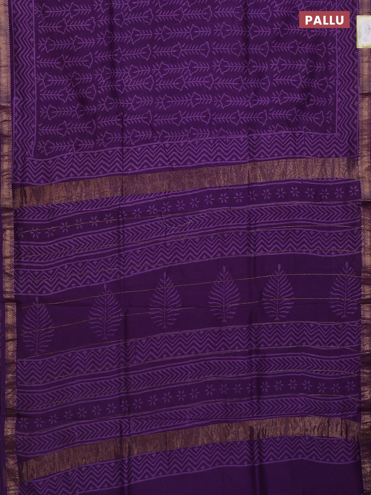 Chanderi bagru saree violet with allover prints and mageshwari border