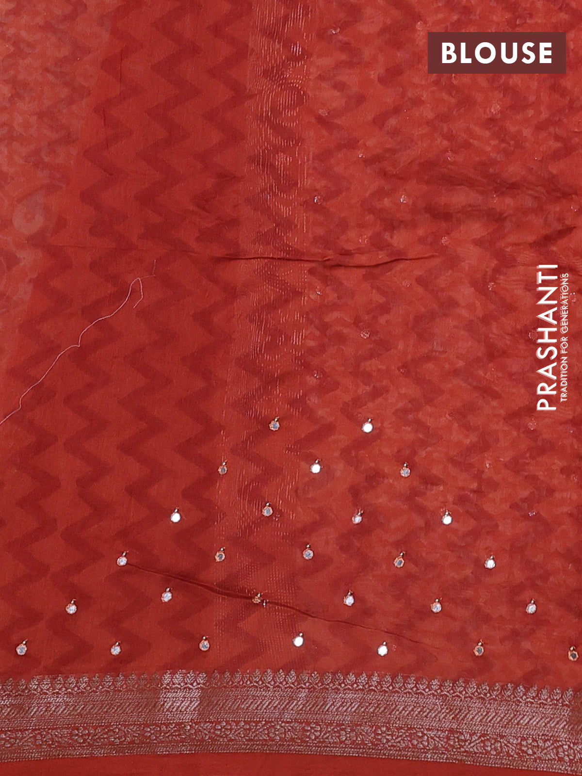 Chanderi silk cotton saree pale orange and orange with allover prints & mirror work and woven border