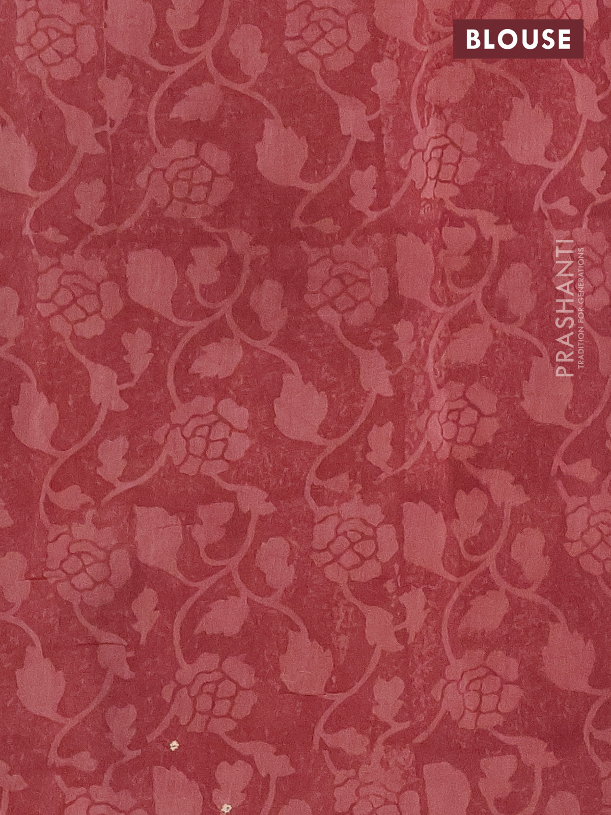 Chanderi silk cotton saree pastel maroon and beige with allover prints & mirror work and printed border