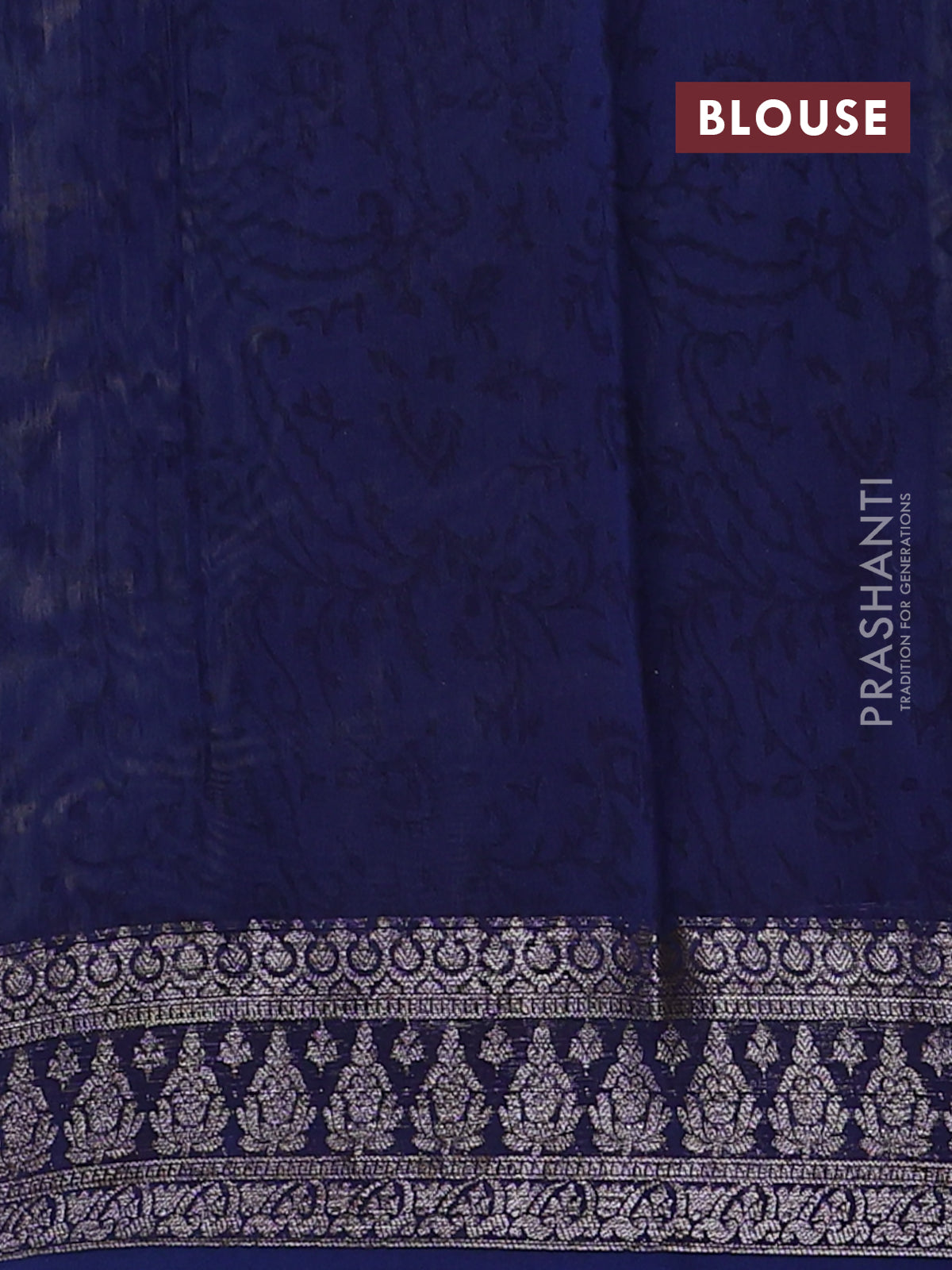 Chanderi silk cotton saree sandal and navy blue with allover geometric prints ans banarasi style border