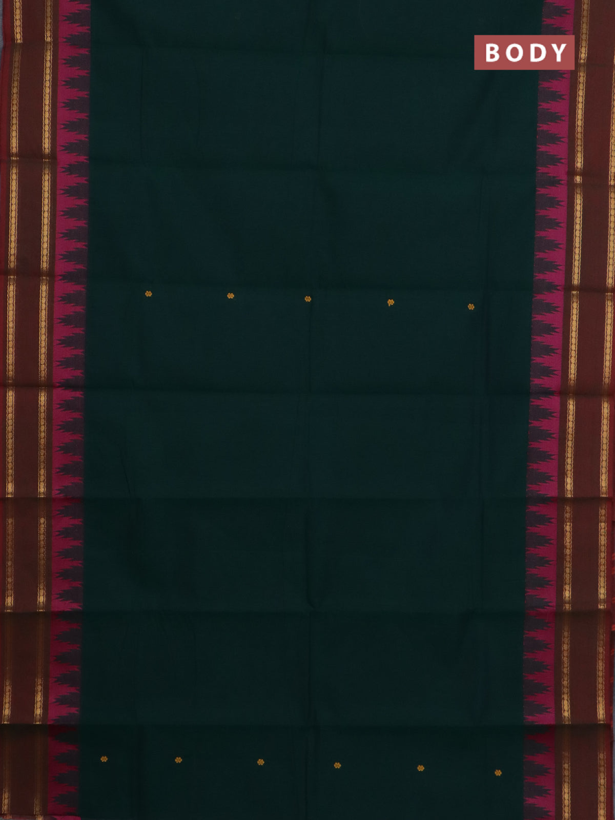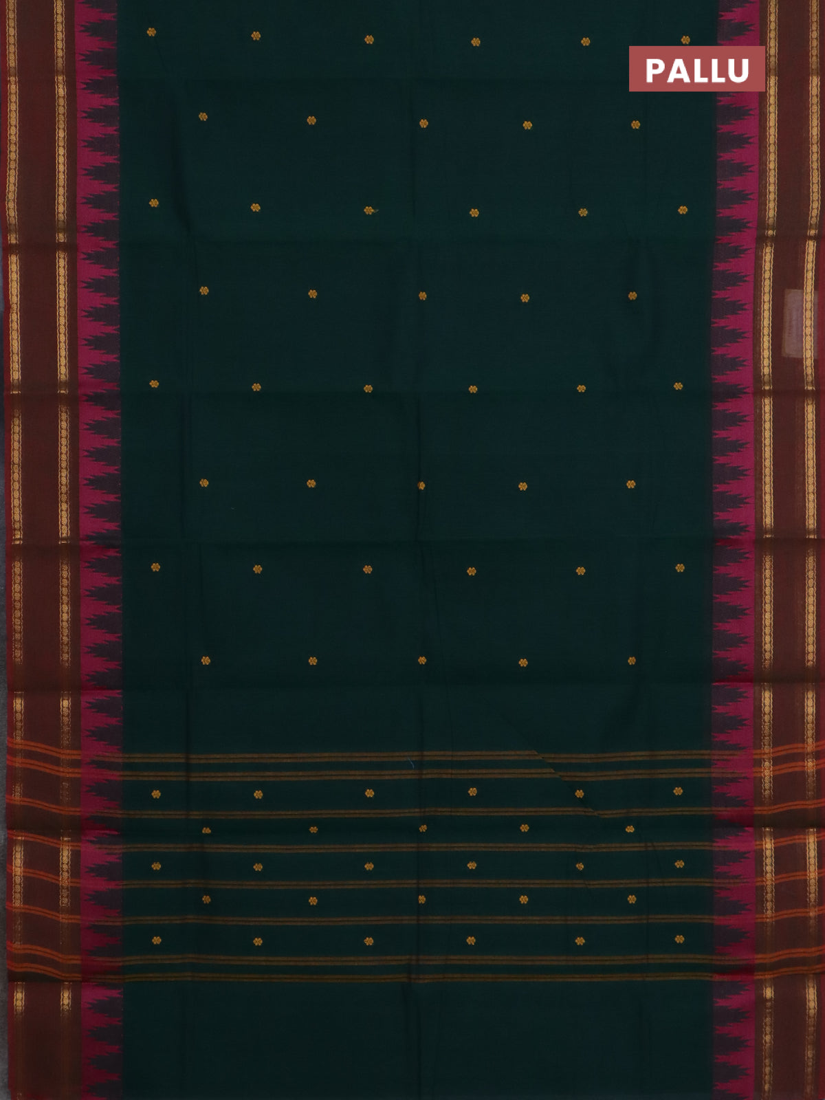 Chettinad cotton saree dark green and dual shade of maroon with thread woven buttas and temple design rettapet zari woven border