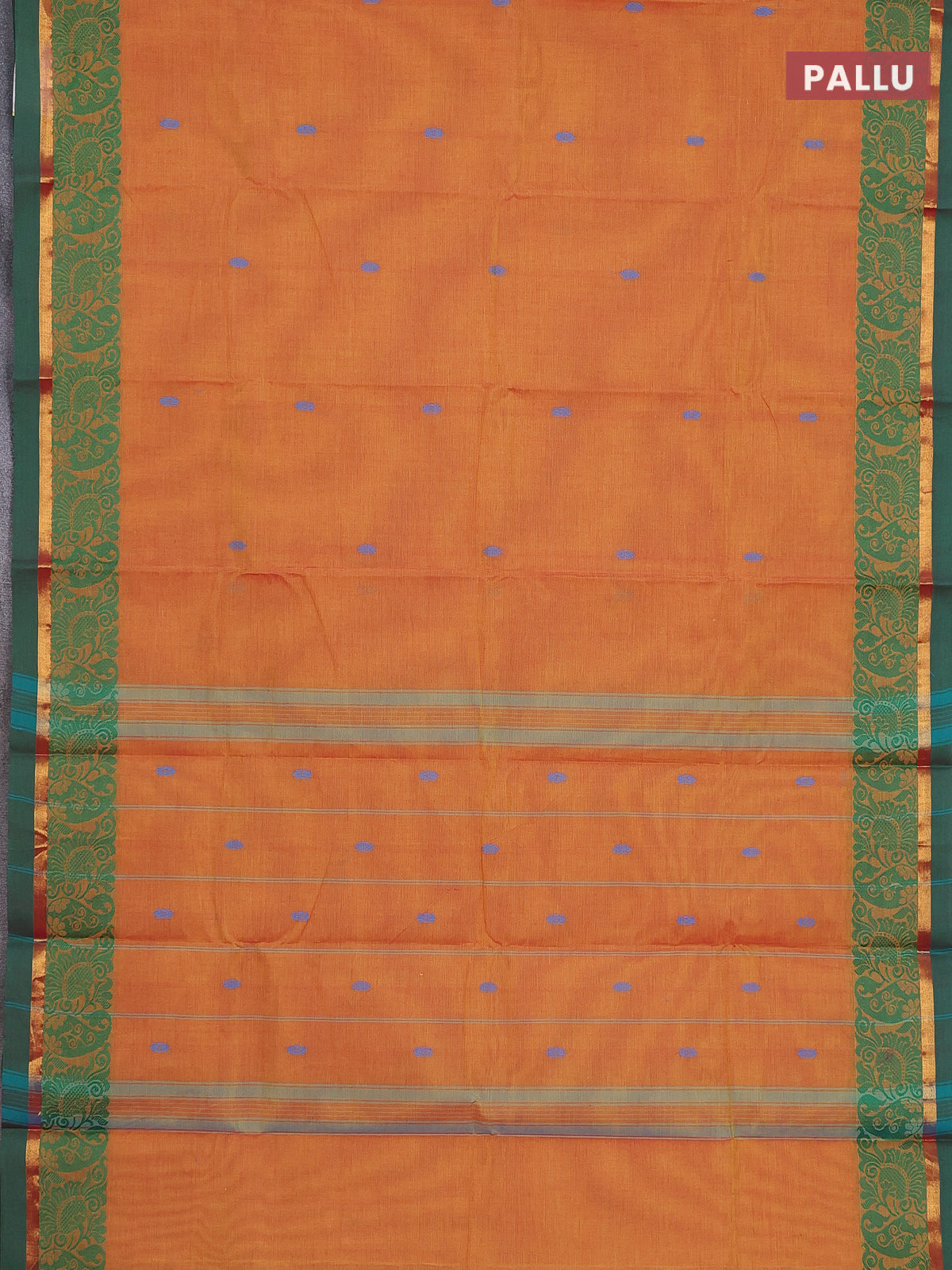 Chettinad cotton saree dual shade of yellow and green with thread woven buttas and thread & zari woven border