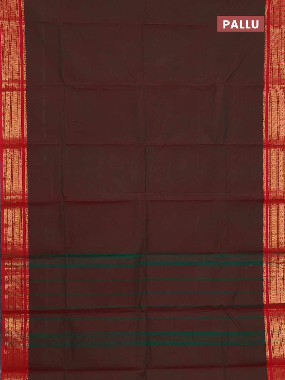 Chettinad cotton saree manthulir green and red with thread woven buttas and zari woven border