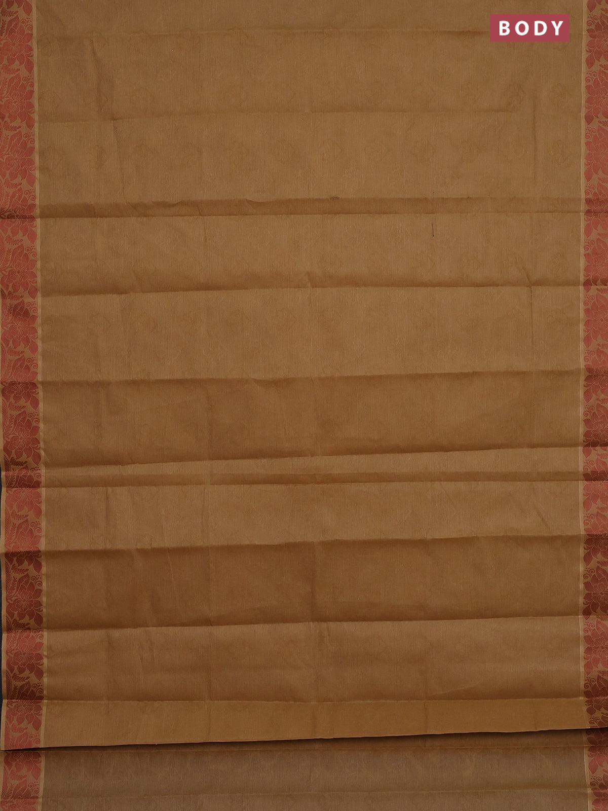 Coimbatore cotton saree dark sandal and brown with allover self emboss and thread woven border