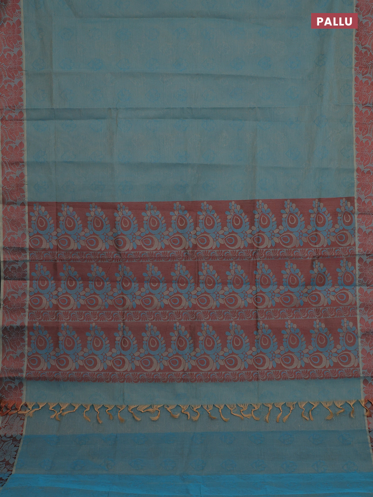 Coimbatore cotton saree dual shade of blue and brown with allover self emboss and thread woven border