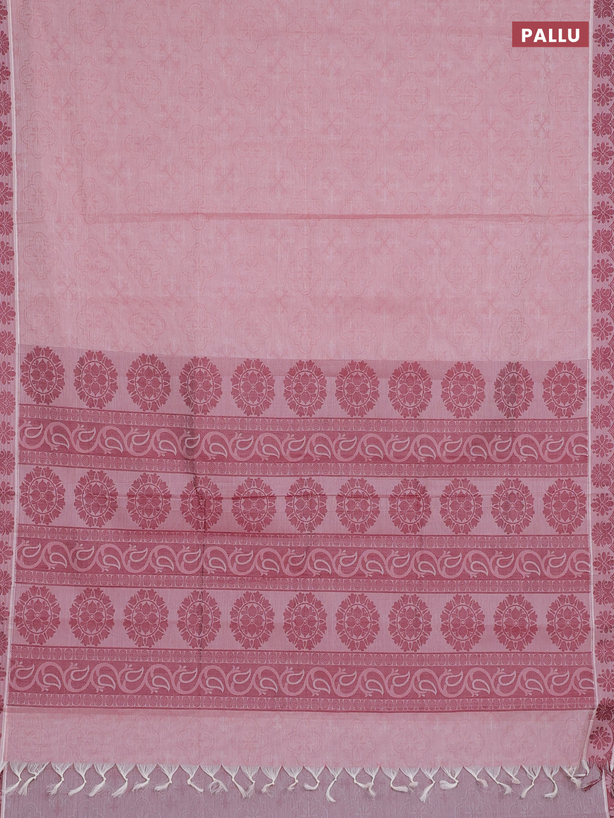 Coimbatore cotton saree pastel pink and maroon with allover self emboss and thread woven border
