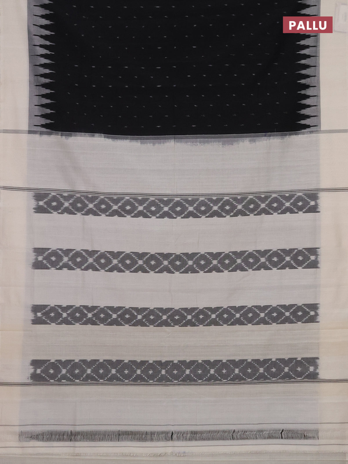 Ikat cotton saree black and off white with allover ikat butta weaves and temple design simple border