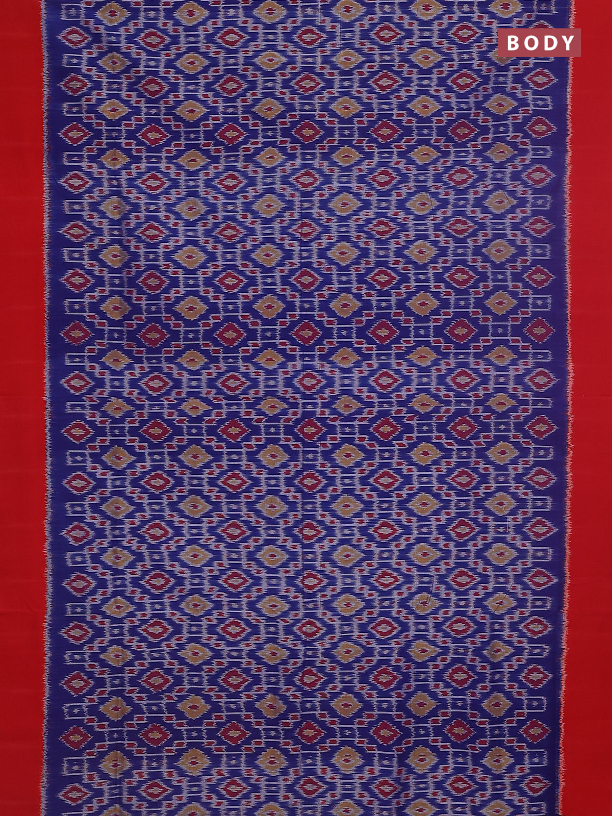 Ikat cotton saree blue and red with allover ikat weaves and simple border