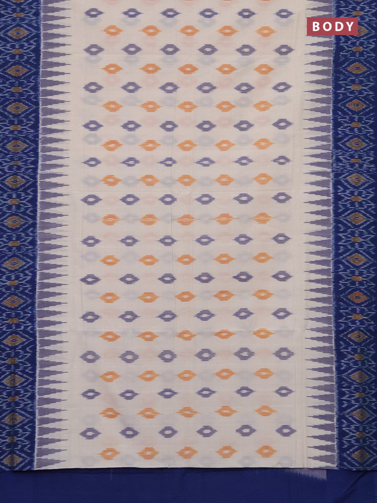 Ikat cotton saree cream and blue with allover ikat butta weaves and temple design ikat style border