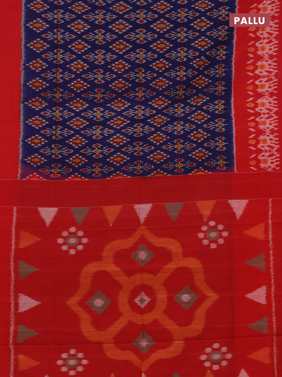 Ikat cotton saree dak blue and red with allover ikat butta weaves and long ikat style border
