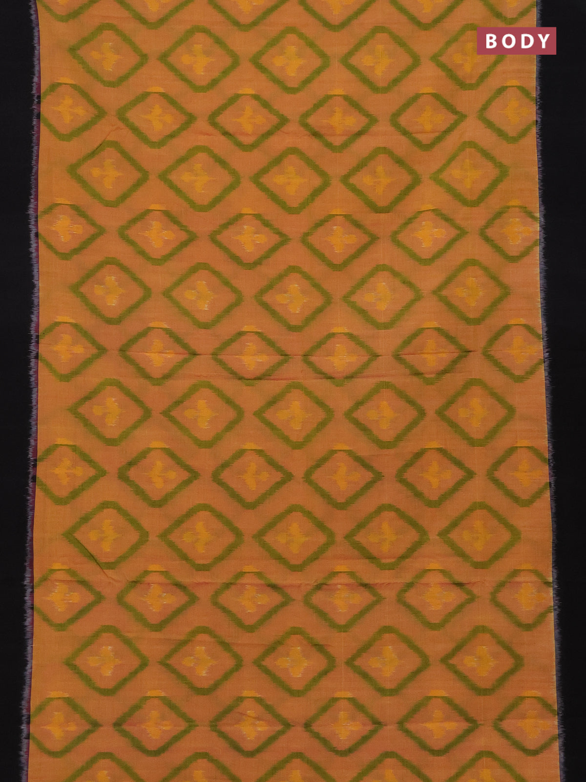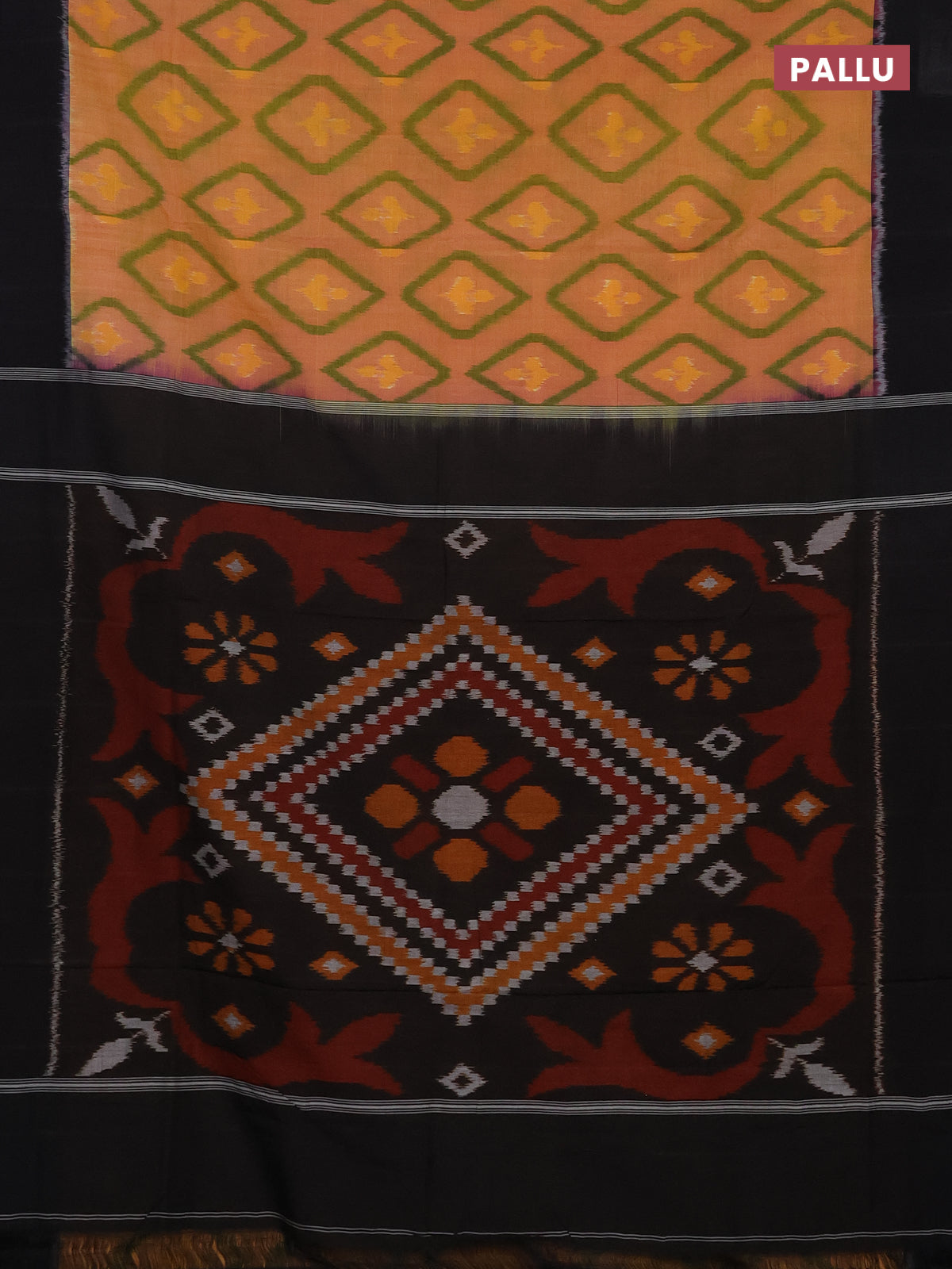 Ikat cotton saree dual shade of yellowish pink and black with allover ikat butta weaves and simple border