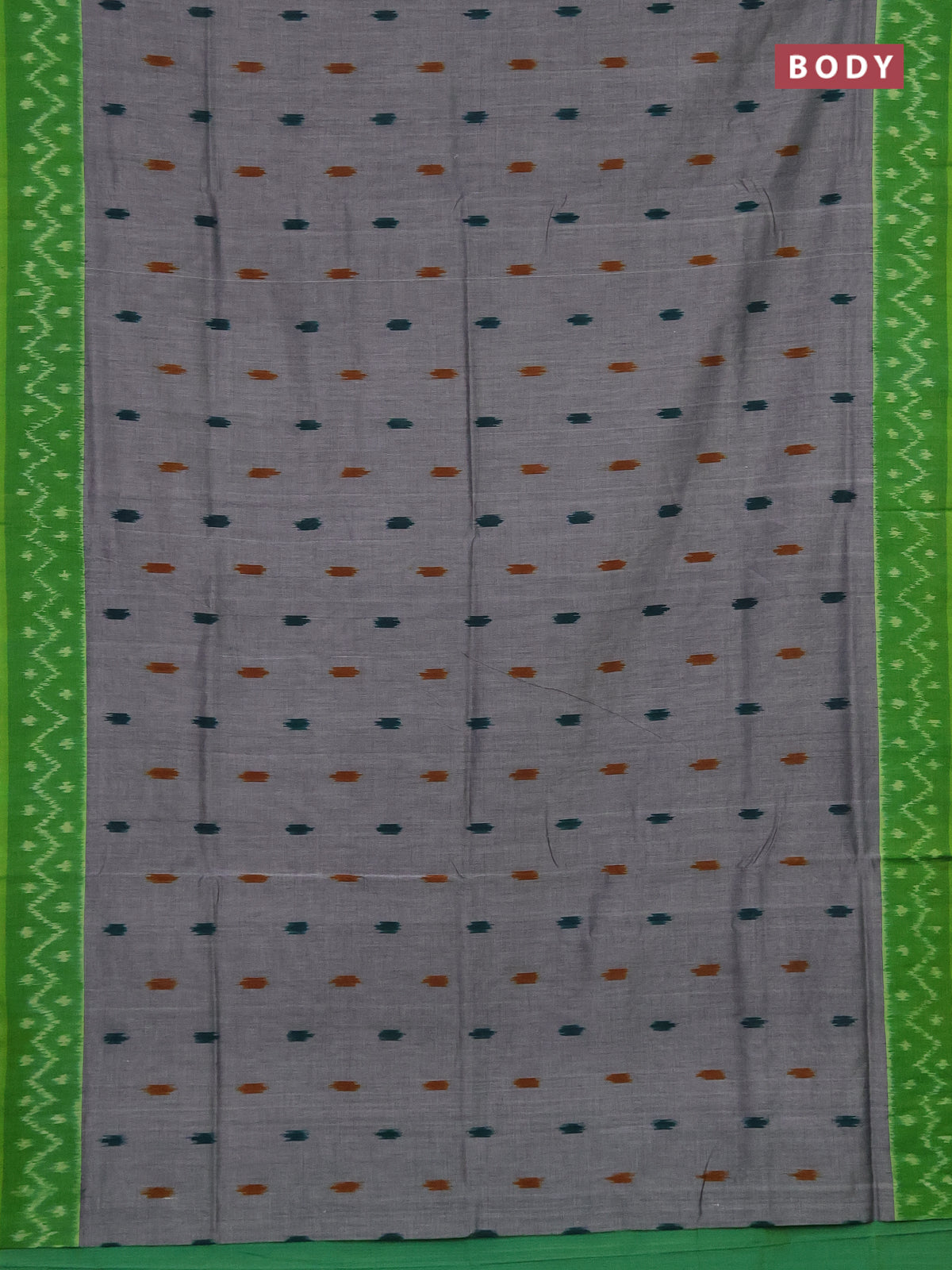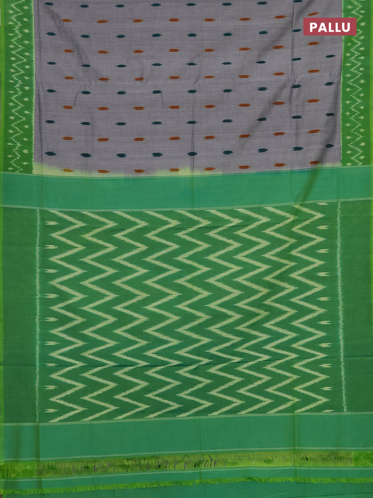 Ikat cotton saree grey and green with allover ikat butta weaves and ikat style border
