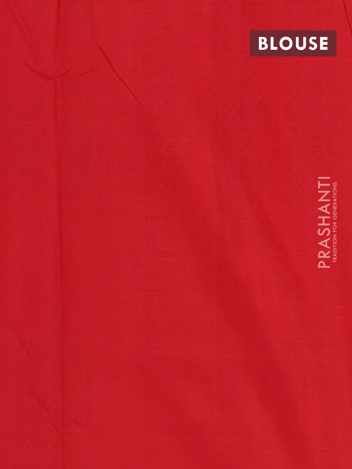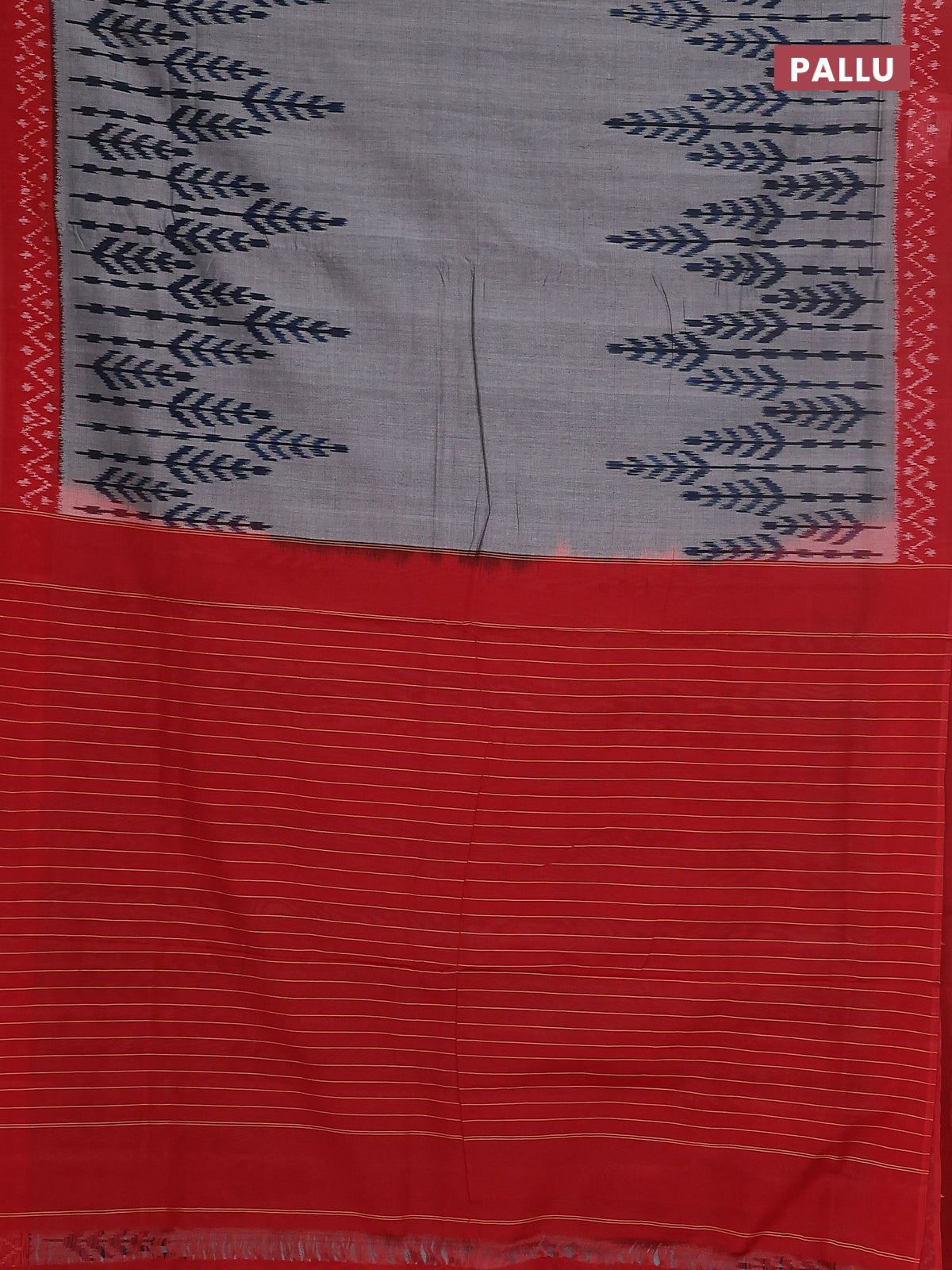 Ikat cotton saree grey and kumkum red with plain body and ikat style border