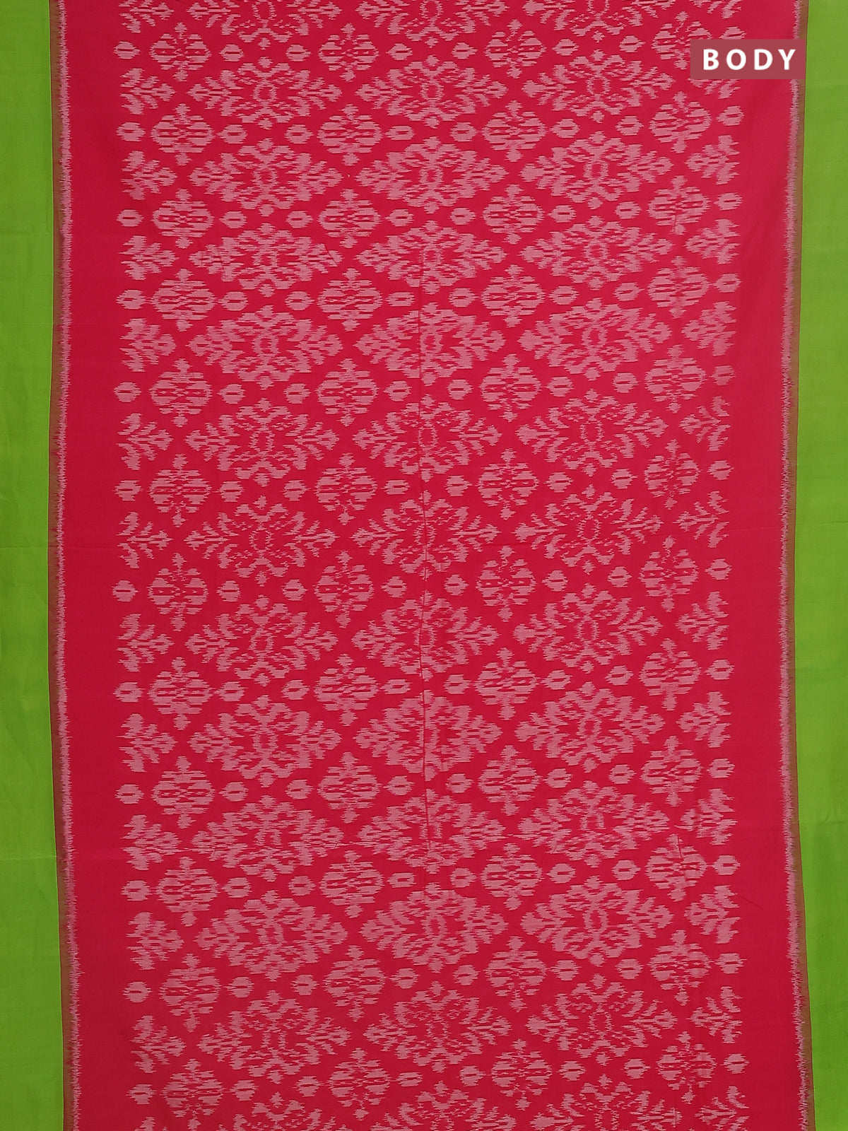 Ikat cotton saree pink and green with allover ikat weaves and simple border