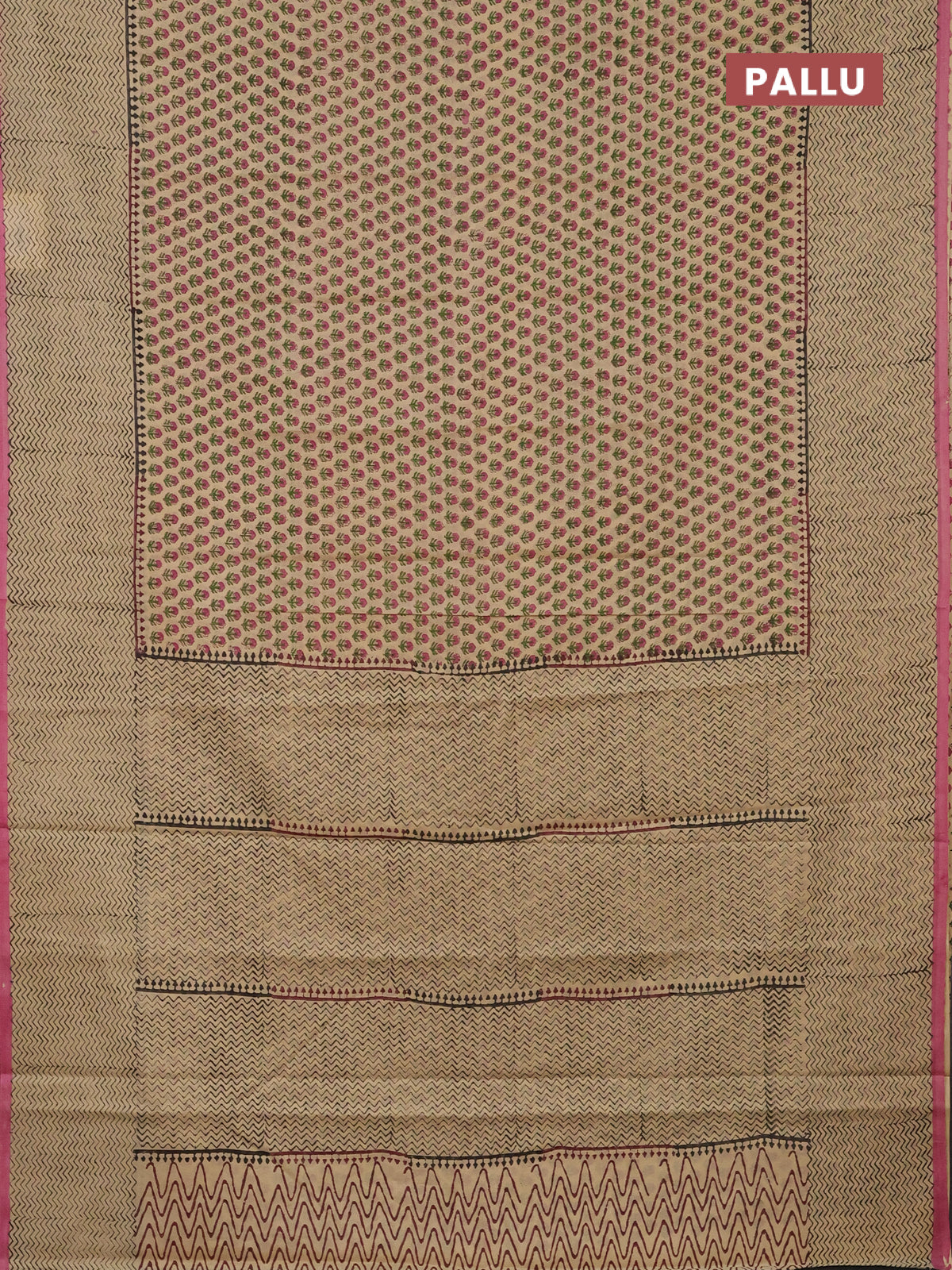Jaipur cotton saree beige and pink with allover butta prints and printed border