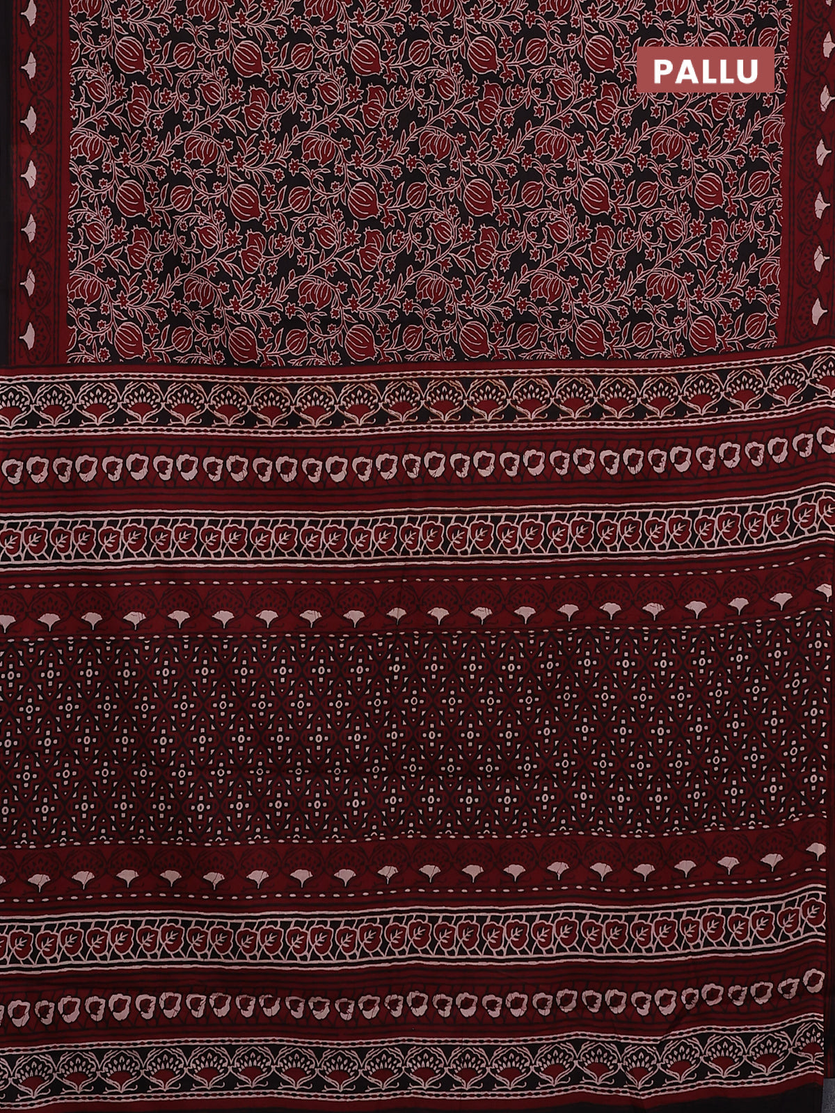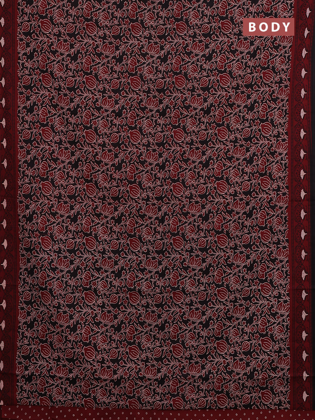 Jaipur cotton saree black and maroon with allover kalamkari prints and printed border