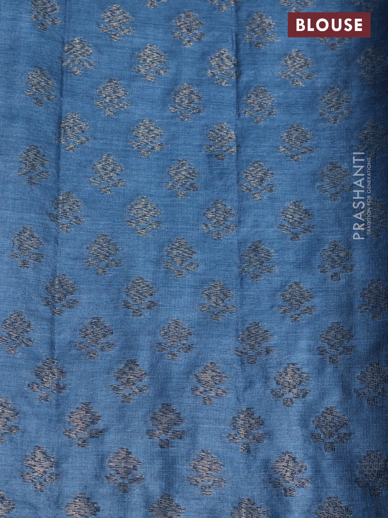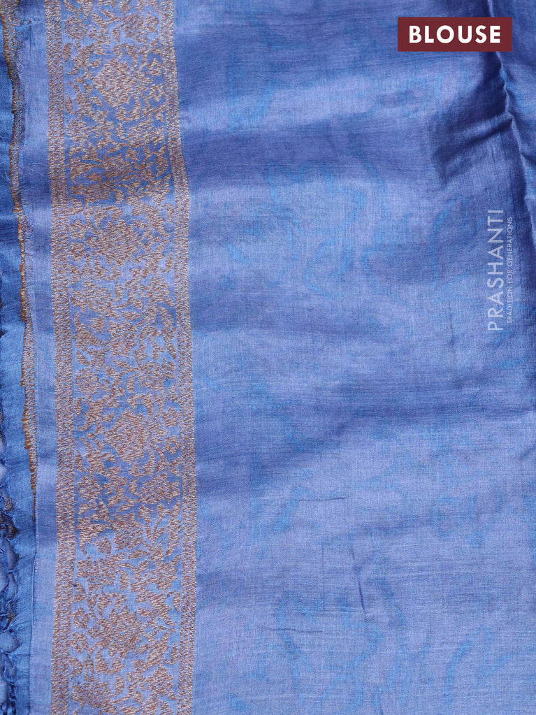 Banarasi tussar silk saree blue with thread & zari woven buttas and banarasi style border
