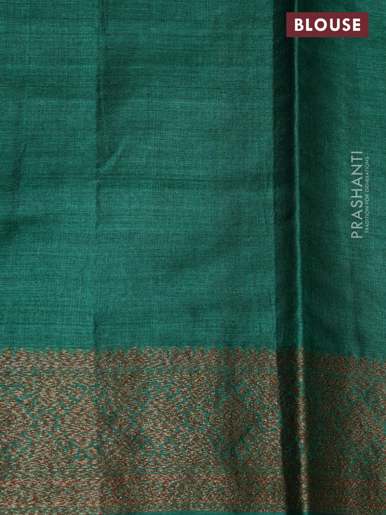 Banarasi tussar silk saree green with allover thread & zari weaves and small woven border
