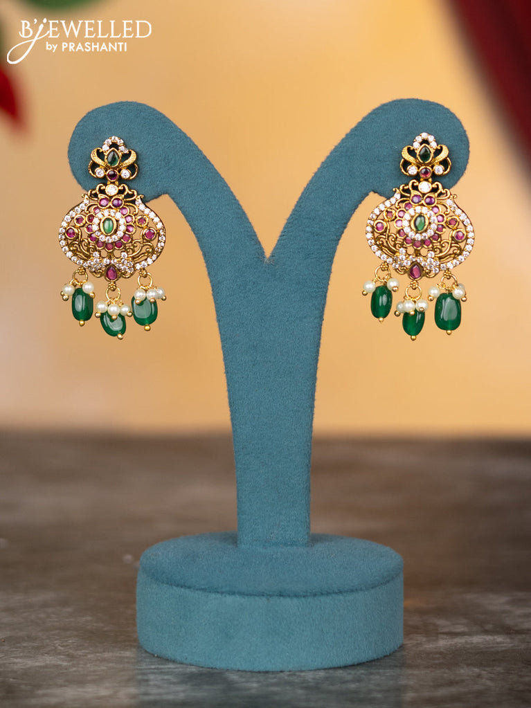 Antique necklace peacock design with kemp & cz stones and pearl & green beads hangings