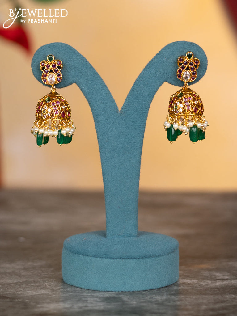 Antique necklace with kemp & cz stones and pearl & green beads hangings