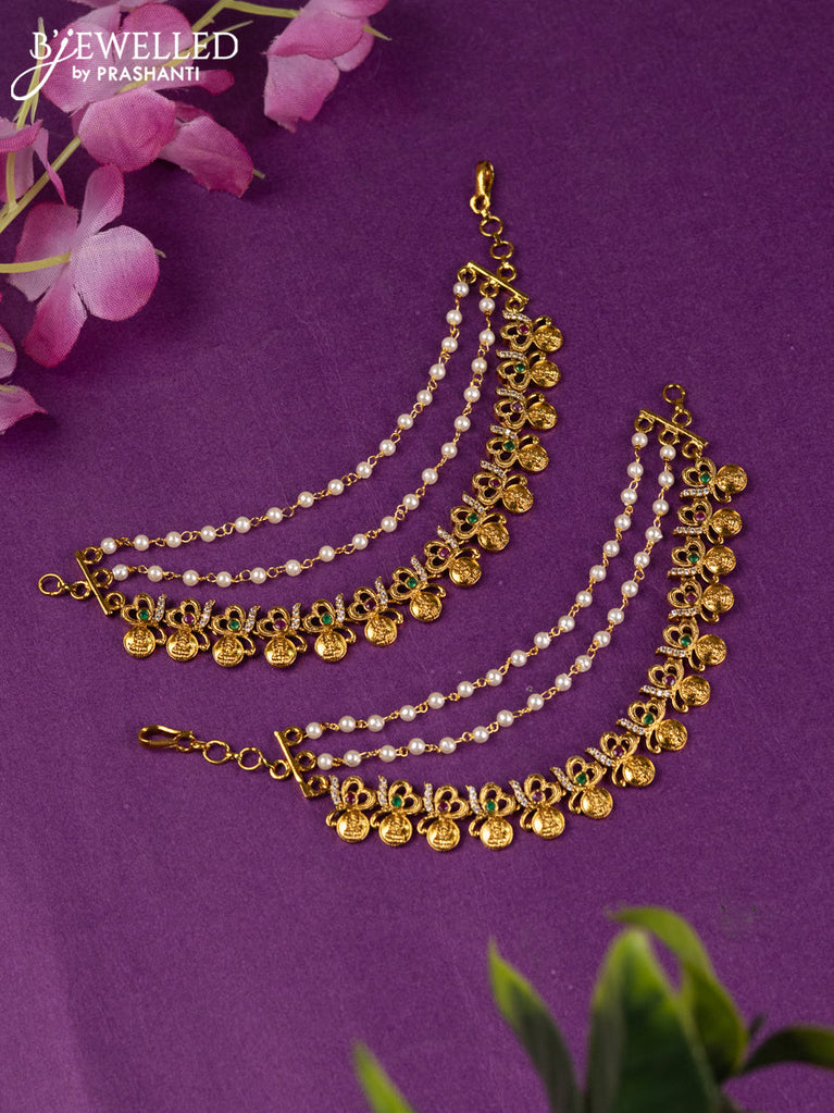 Antique triple layer maatal with kemp & cz stones and pearl hangings