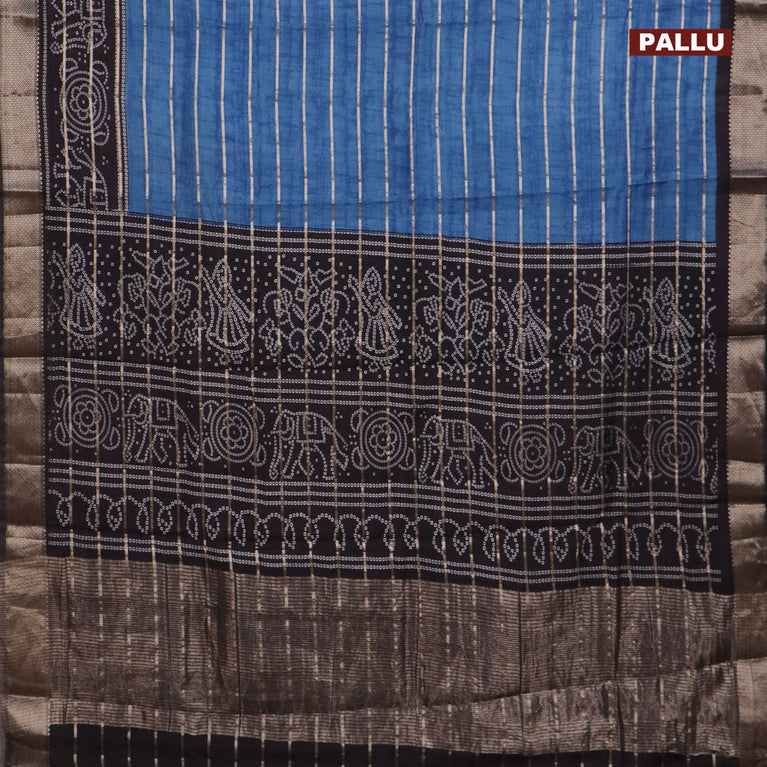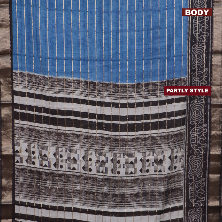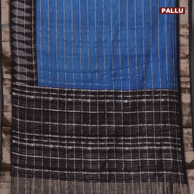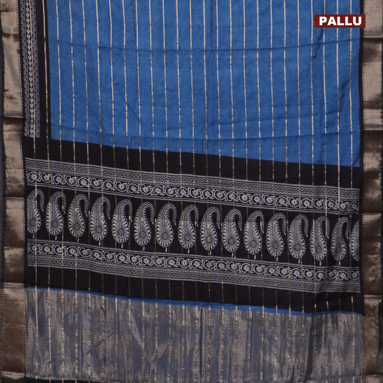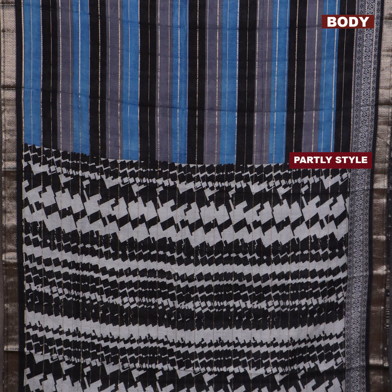 Assam partly silk saree blue and black with allover digital prints & zari weaves and zari woven border