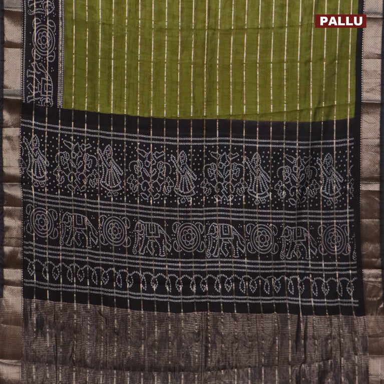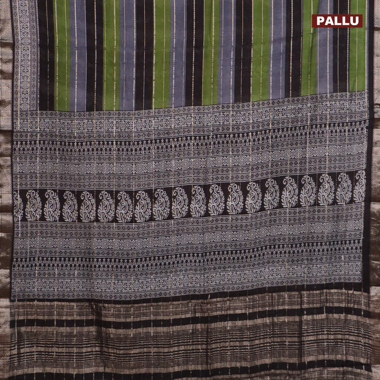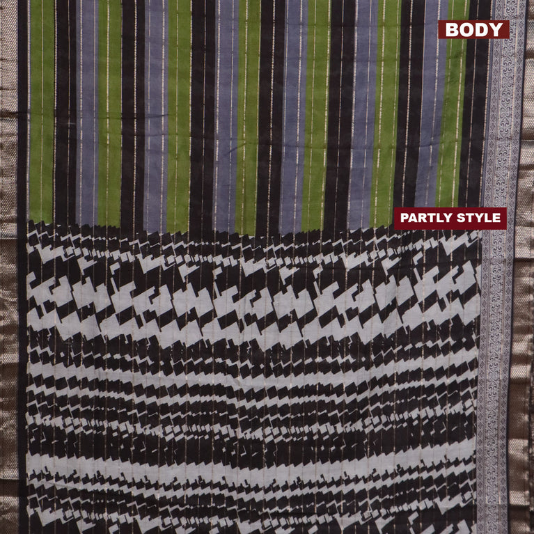 Assam partly silk saree mehendi green and black with digital prints & zari weaves and zari woven border