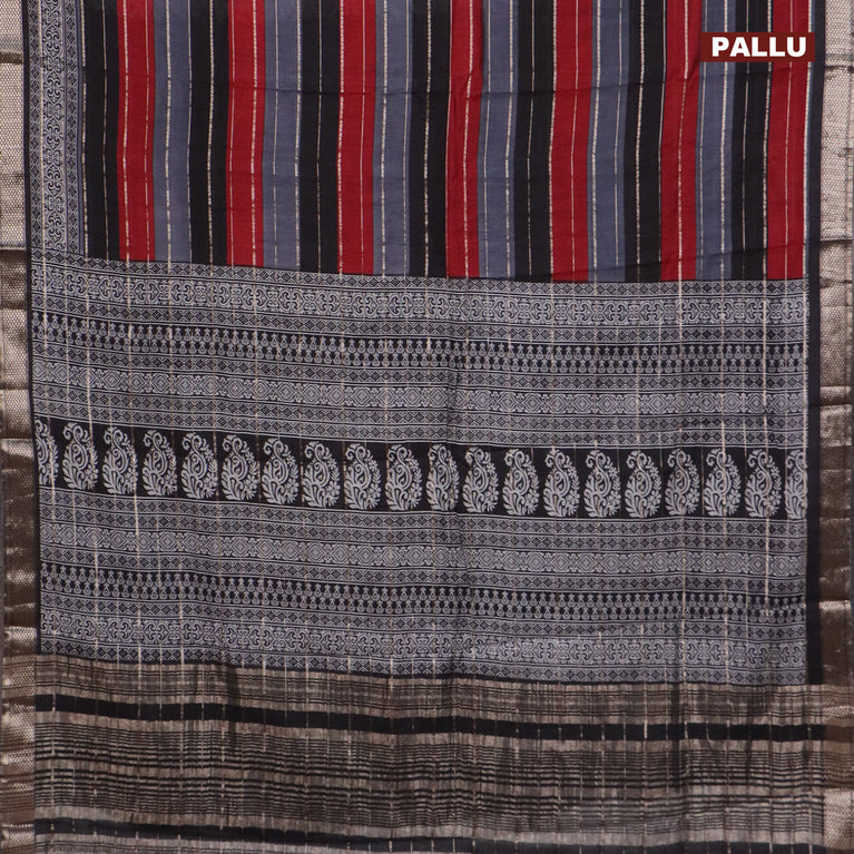 Assam partly silk saree multi colour and maroon black with digital prints & zari weaves and zari woven border