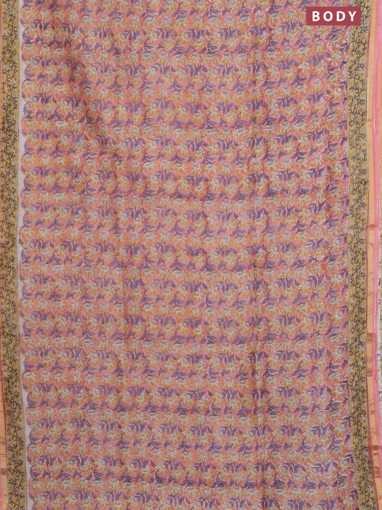Chanderi bagru saree mustard yellow and peach pink with allover floral butta prints and small zari woven border