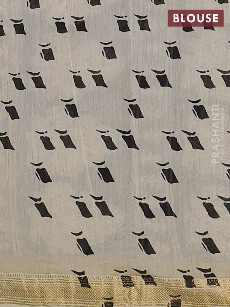 Chanderi bagru saree cream and yellow with allover prints and maheshwari border