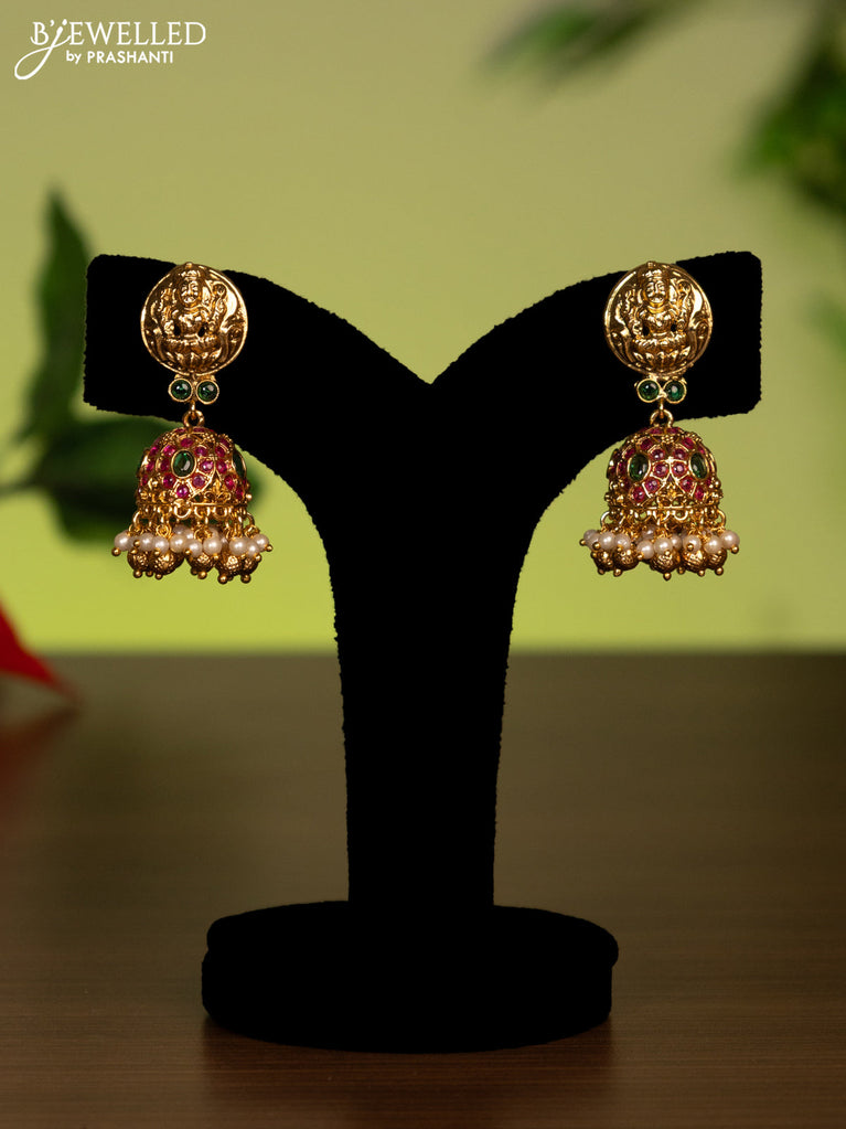 Antique attigai necklace lakshmi pendant with kemp stones and pearl hangings