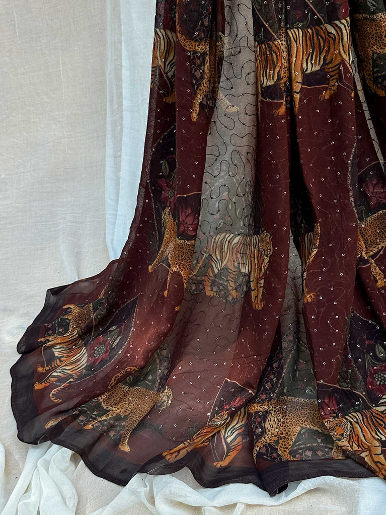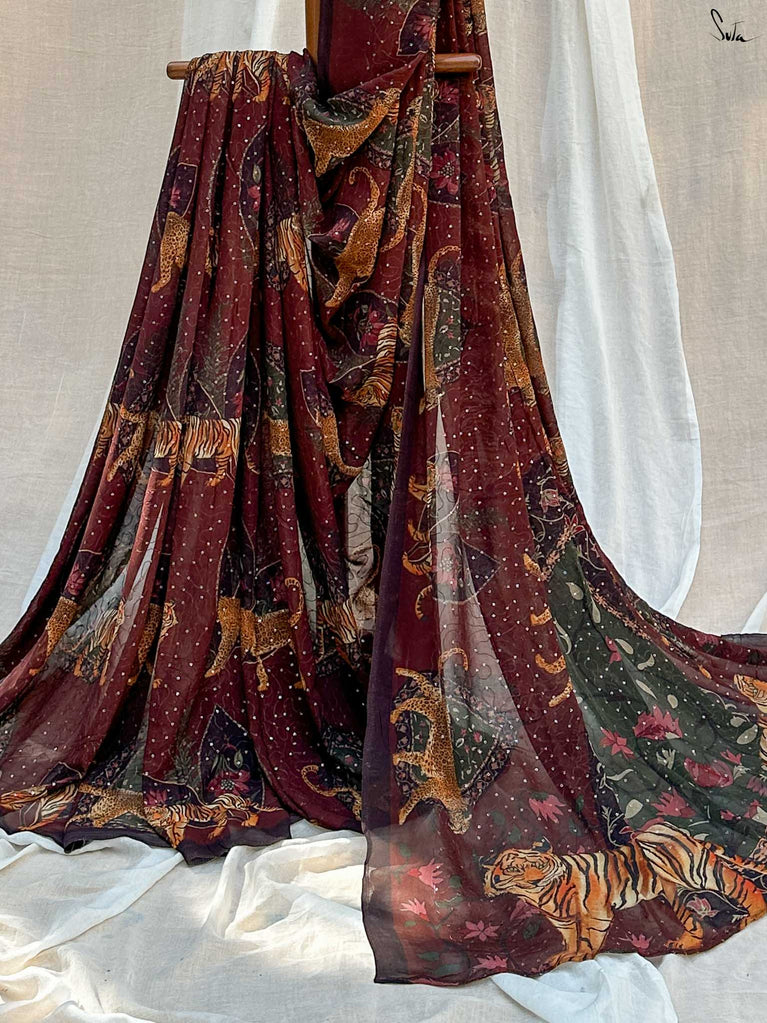 Note : Please note that these sarees will not come with a fall so as to retain and highlight the beautiful flow of the fabric. However, you may choose to have a fall attached at your own discretion.