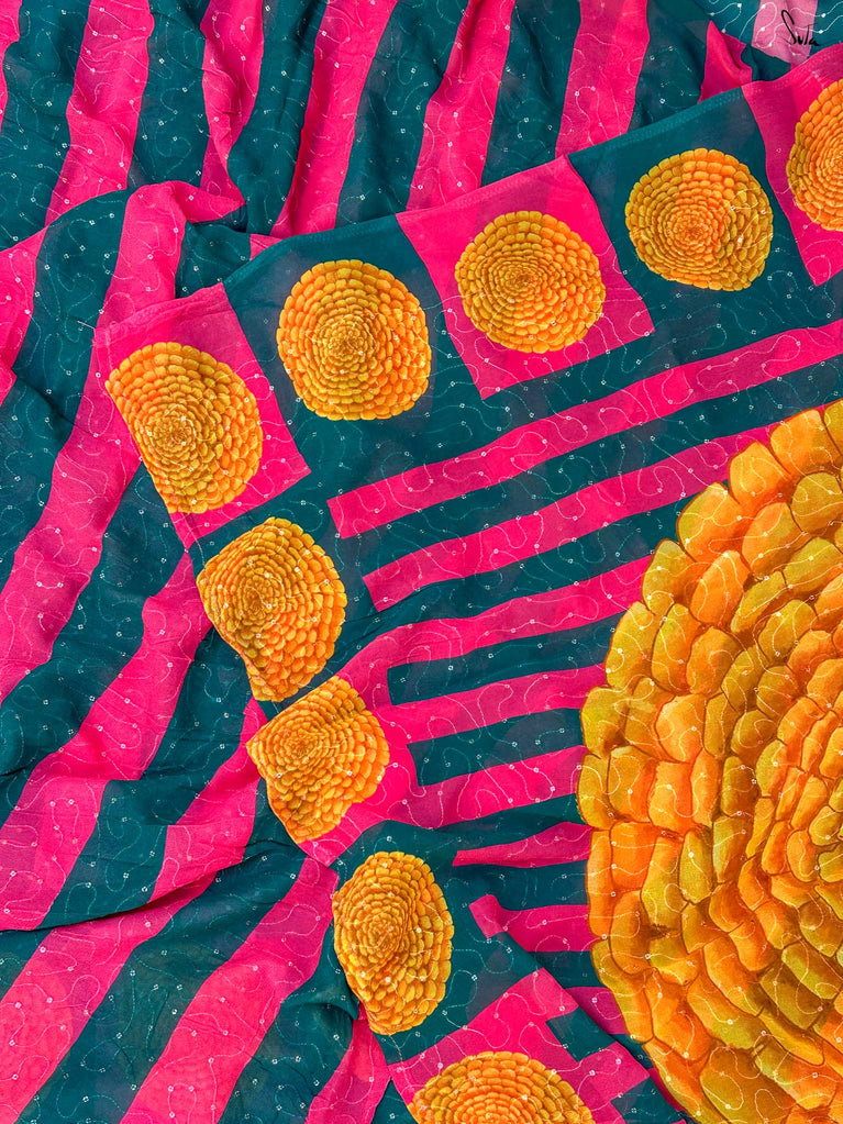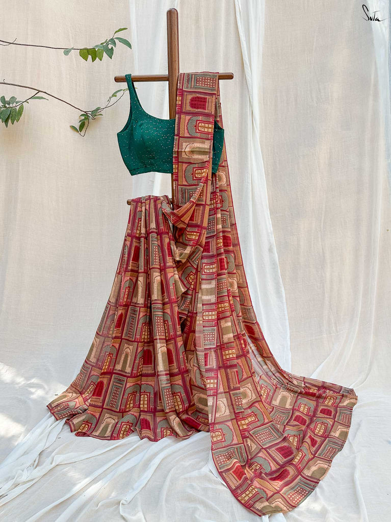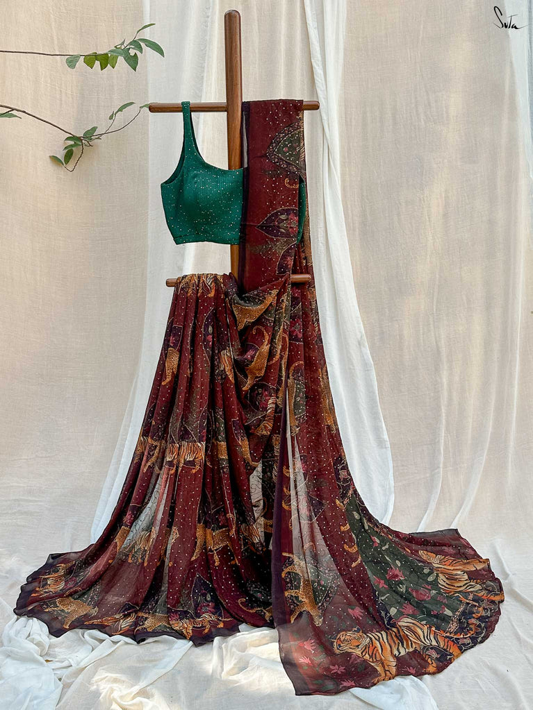 Su, the model is wearing size S blouse and saree is Marigold Scallops.