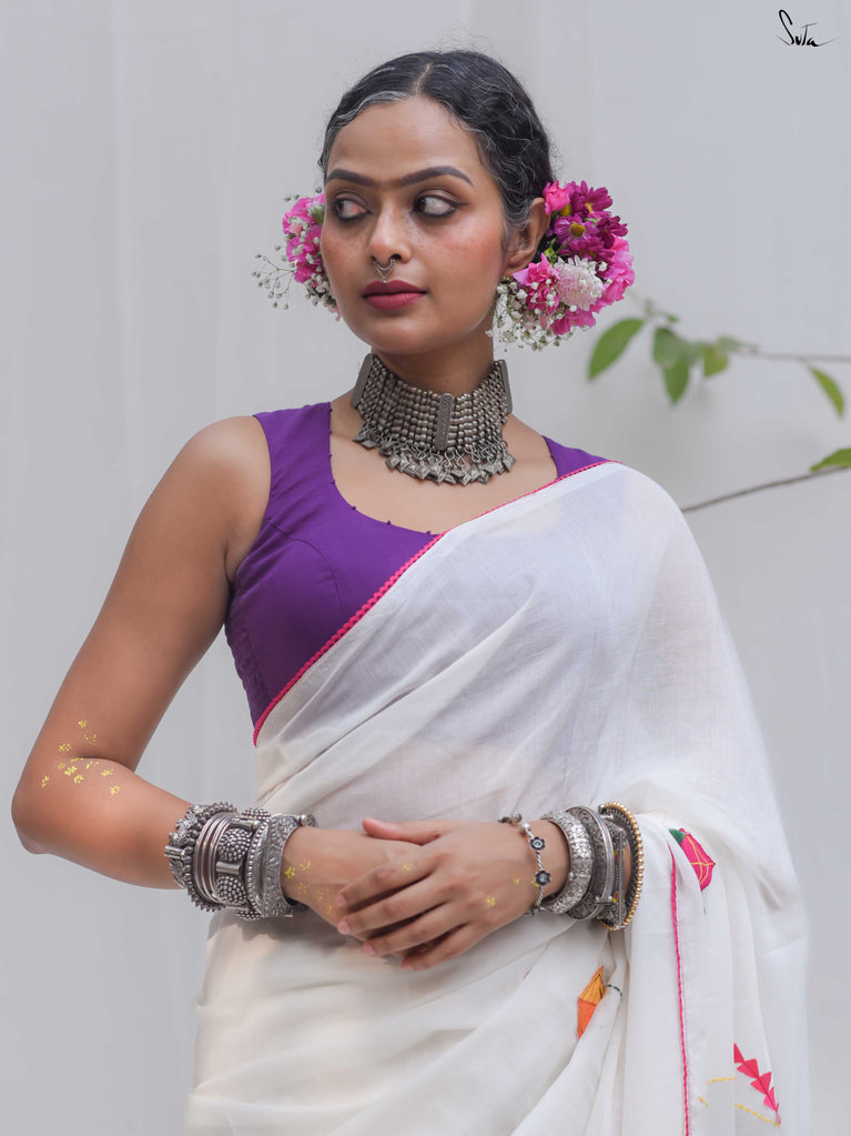 Note: Our mul sarees are slightly transparent, it’s the nature of the fabric and part of its soft, airy charm.