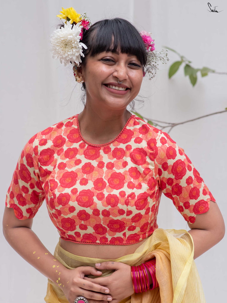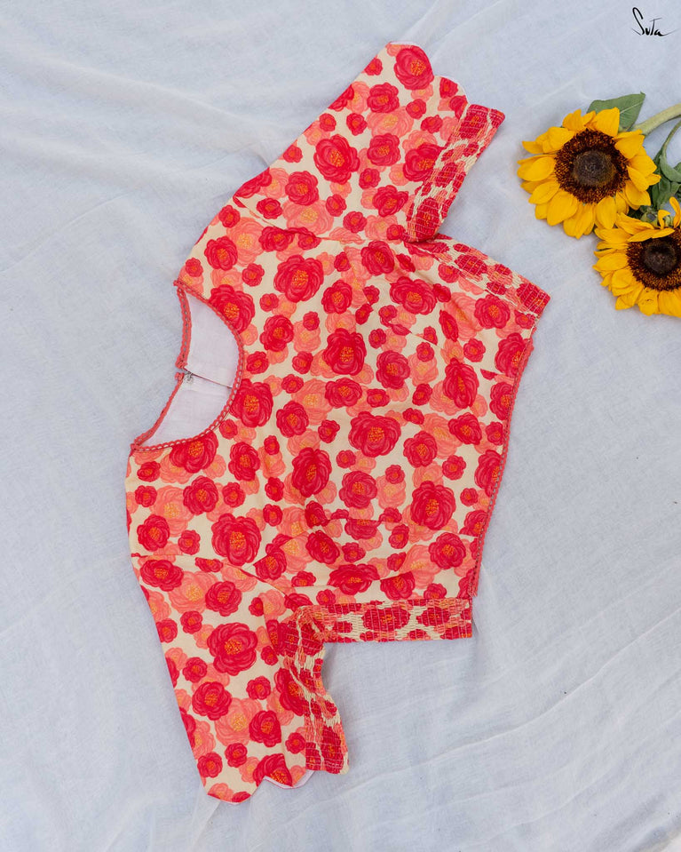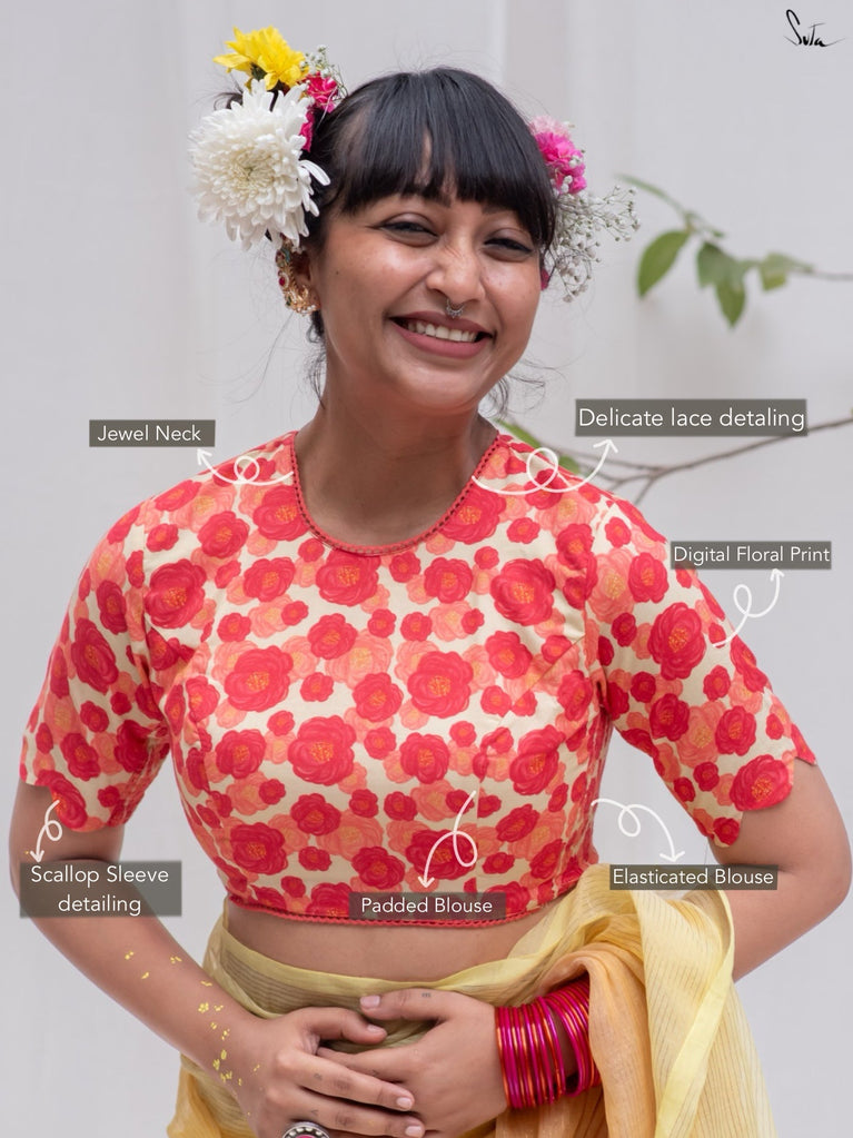 Note: Our blouse comes with an extra margin, allowing you to easily size up for a perfect fit.
