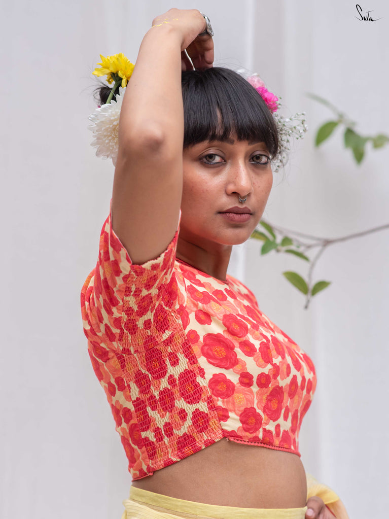 Blouse: The model is wearing S size blouse called Gul Sa Basant