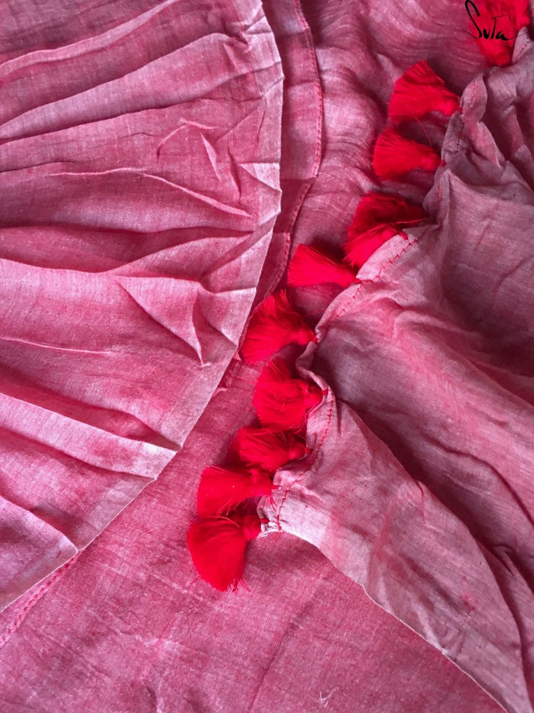 This saree is softness turned into a saree. The gentle pink mul cotton drapes like a whisper, light, airy and effortlessly comforting - perfect for long days, warm afternoons, and moments when you want to feel quietly radiant.
