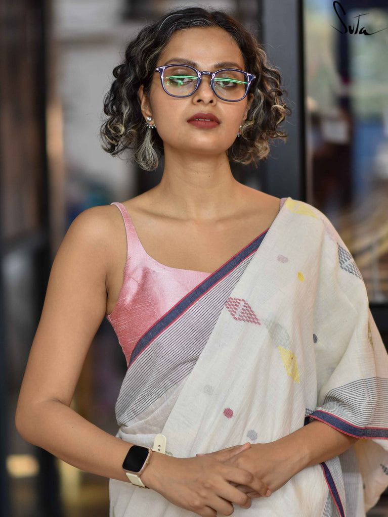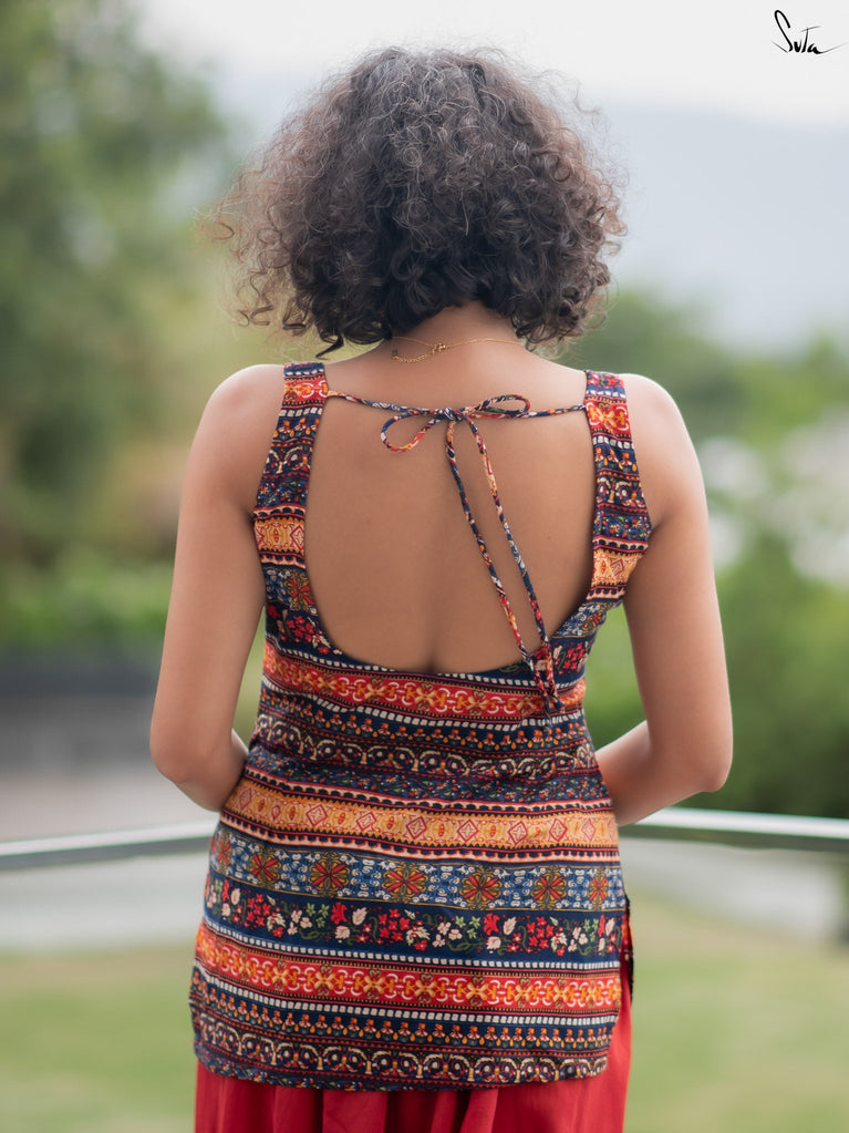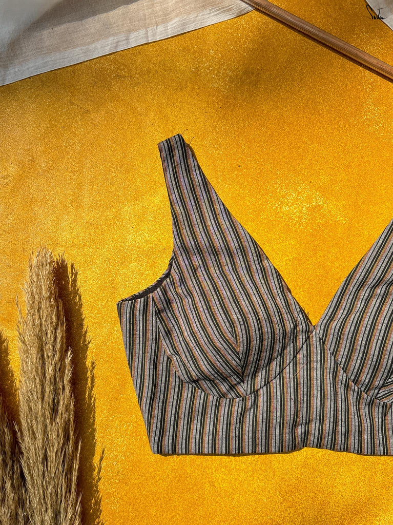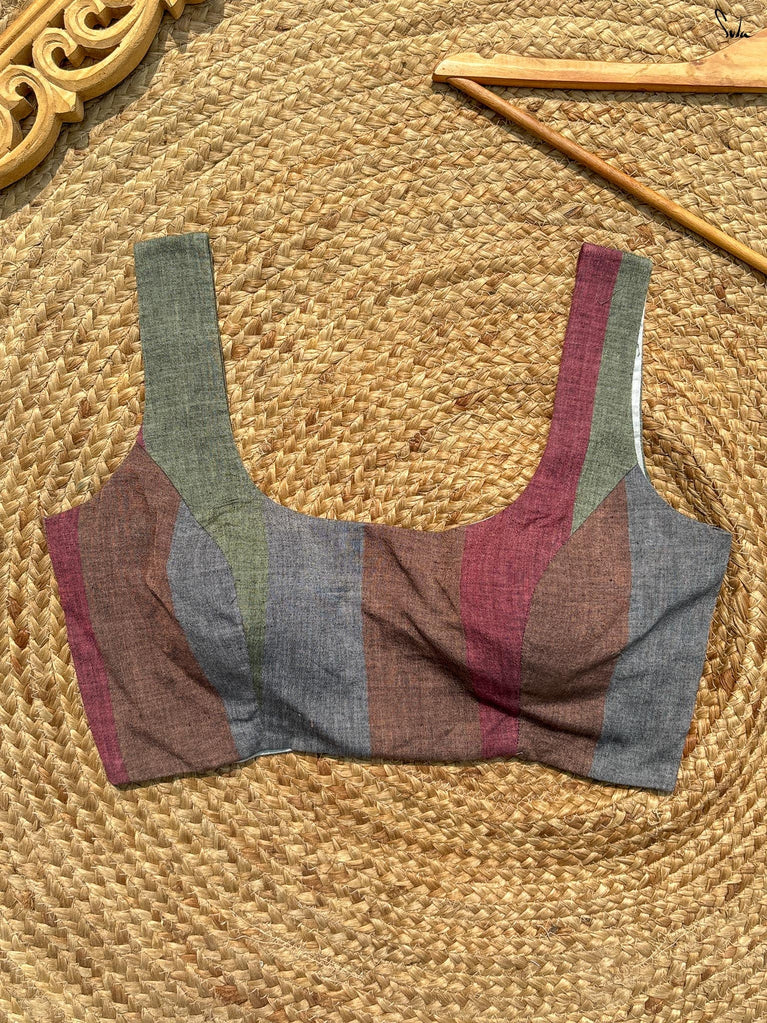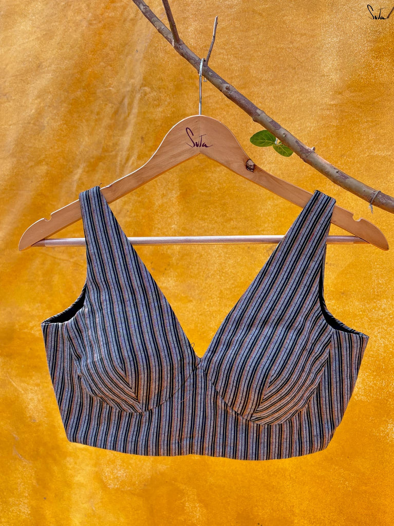 Light, vibrant, and easy to wear. Adi Tara is crafted in breathable Cambric cotton that feels soft and comfortable on the skin. The multicolour floral print adds a cheerful pop, while the sleeveless cut, padded finish, and flattering V-neck create a clean, effortless silhouette. Finished with a back opening, this blouse is made to pair seamlessly with everyday cotton sarees - comfortable, confident, and ready to be worn on repeat.