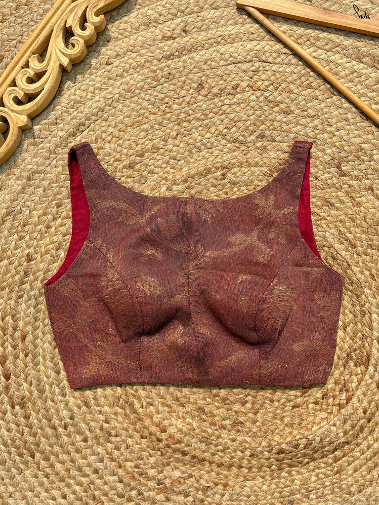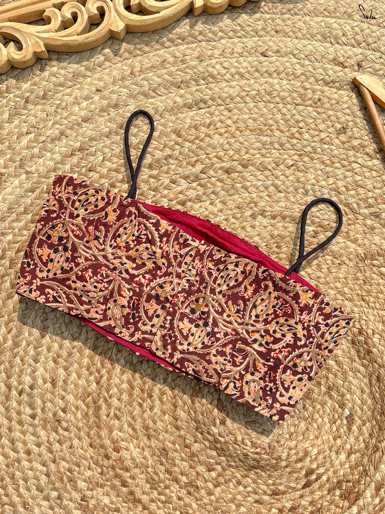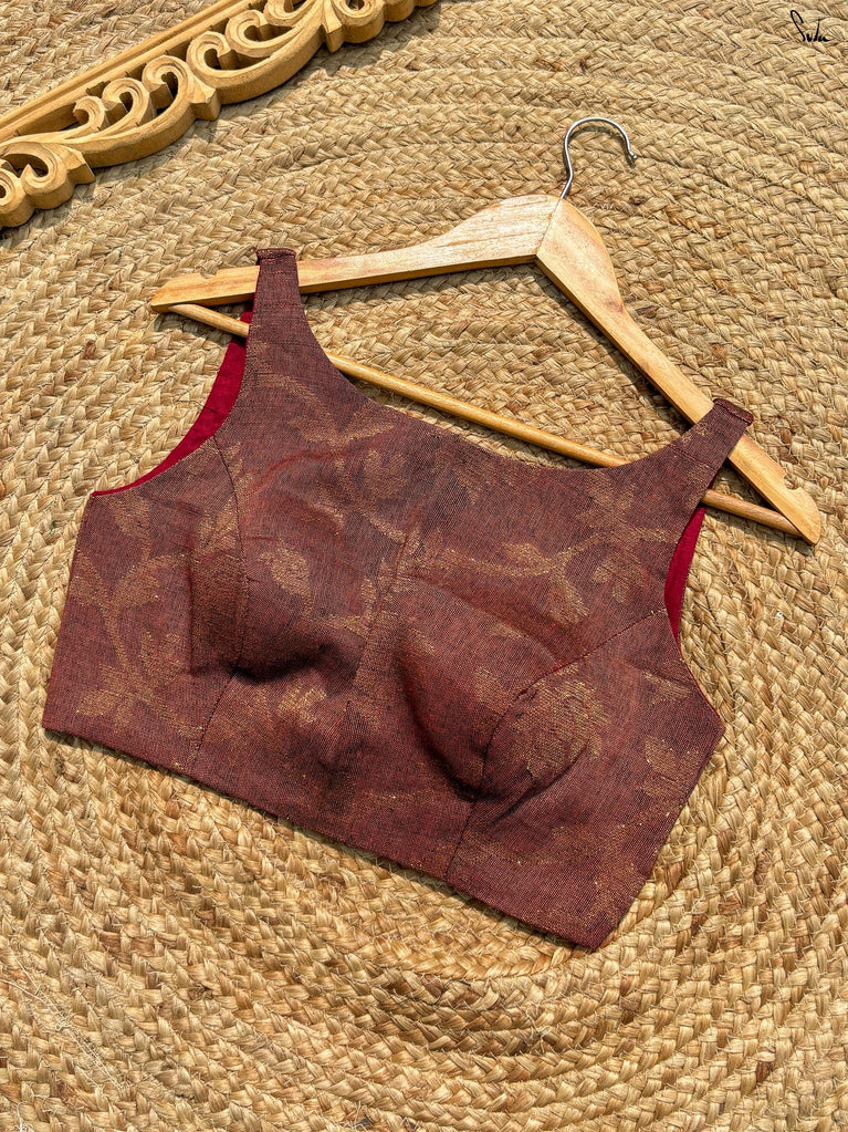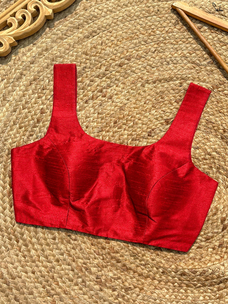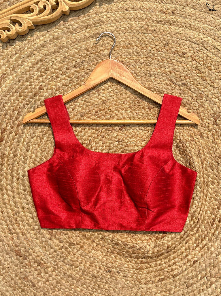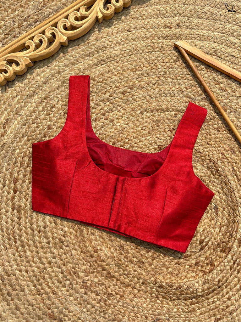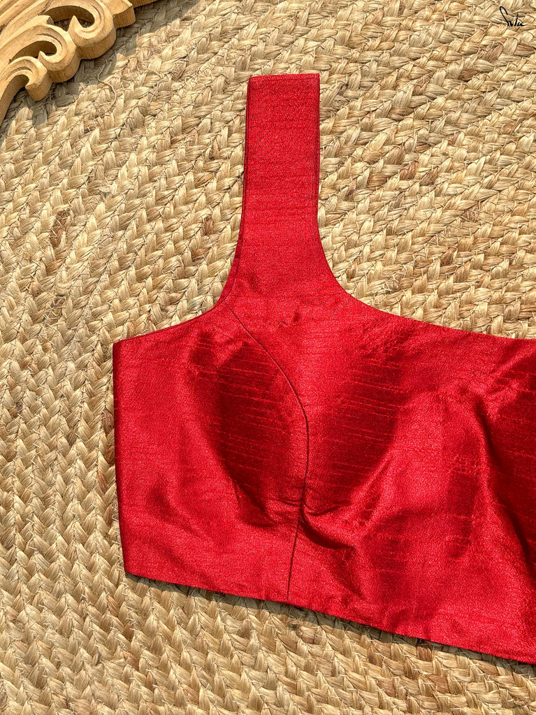 The word 'Bela' translates into 'Heart'. Drawing inspiration from the name, this bold sleeveless blouse, adorned in a vibrant red hue, is all set to win hearts! Tailored to perfection and being the perfect fit for every event, the blouse ensures the utmost comfort and sophistication. Delve deep into the beauty of the art and artisans, with a blouse where love and patience poured into every stitch.
