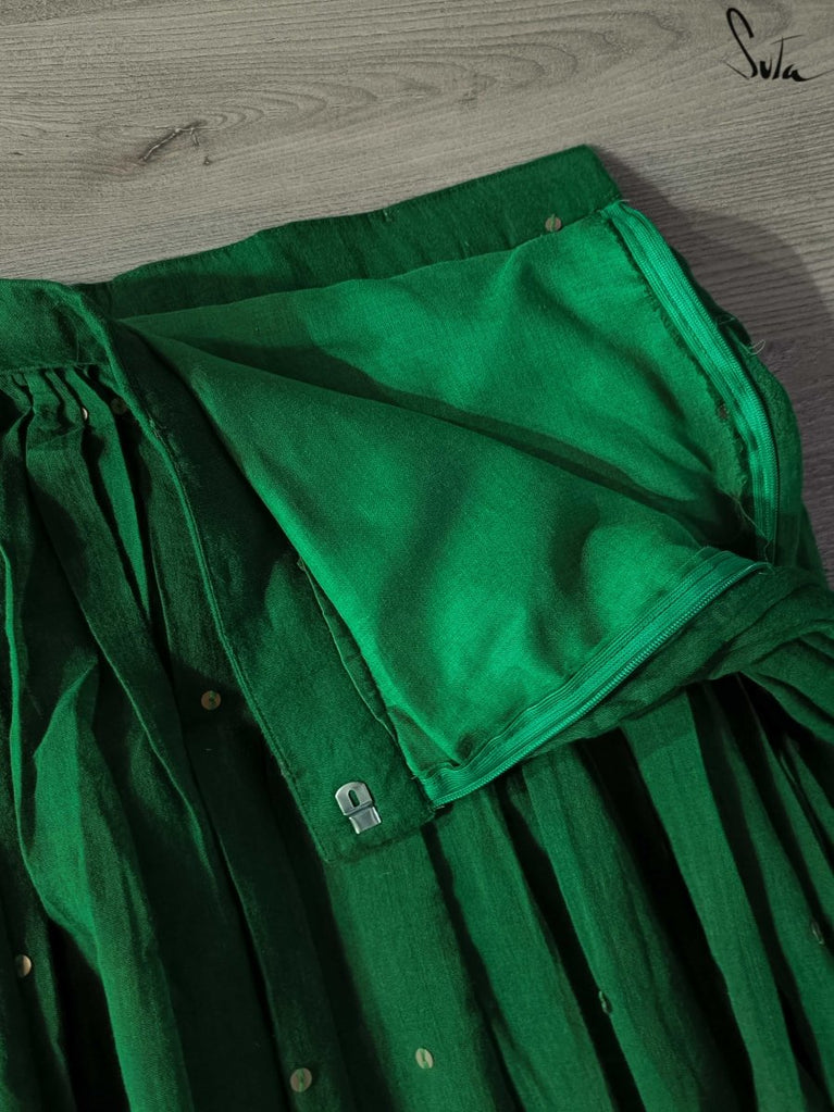 It was 5 am on a cold winter’s morning and Niharika was already wide awake. It was the first day of her wedding festivities. She was only hours away from being swept away by the hustle and bustle. But for now, her world was tranquil and calm. Her soulmate was her childhood sweetheart, with whom she had gone through many ups and downs. While she was happy, she could not help the nostalgia that washed over her, as she gazed out at the lawn, the big dahlias and the vibrant the rose bushes she had grown up amidst. In the horizon, dew drops sparkled on the leaves of the trees surrounding their house. And, as she stood there, the inevitability of change dawned on her. Today her life would change forever, but, for now, she would reminisce about the life she was leaving behind.Capture your most beautiful memories in this gorgeous art silk lehenga.