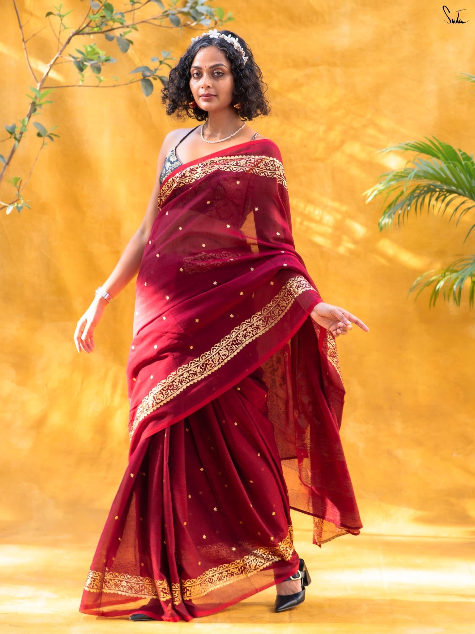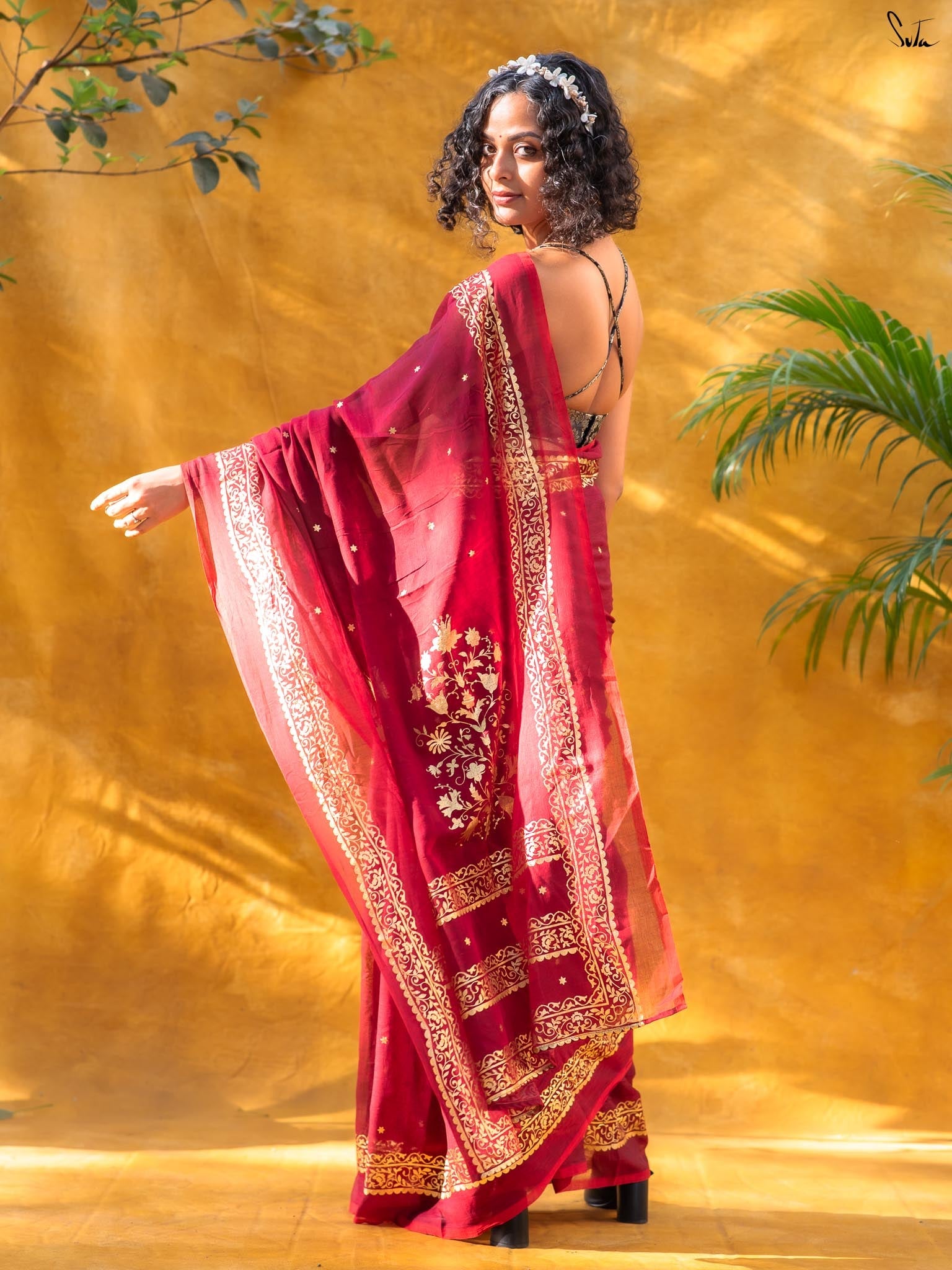 The mul cotton is what we call ˜made in heaven at Suta. Known in West Bengal as mul mul, the fabric is buttery soft and delicately beautiful. The weave of this fabric is very fine, and this lends a very fluid texture to it that makes draping it a breeze. It is truly like a hug that wraps you in its love!