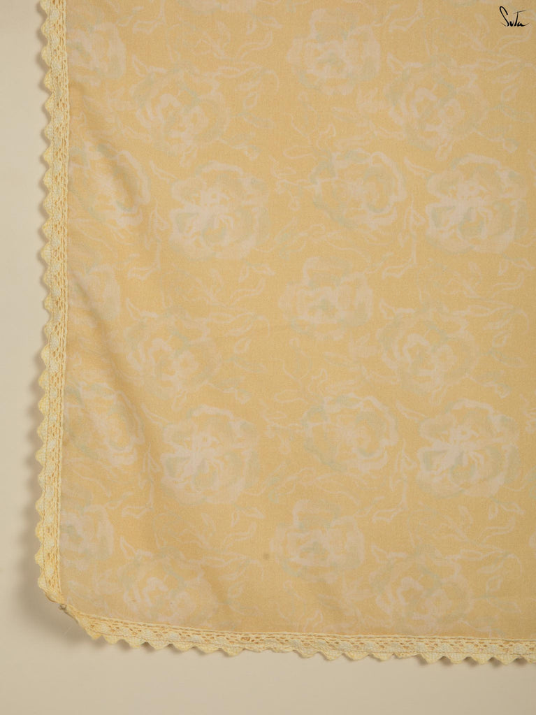 Meticulously embellished white scalloped border creates a charming contrast, complementing the embroidery crafted on the fabric.