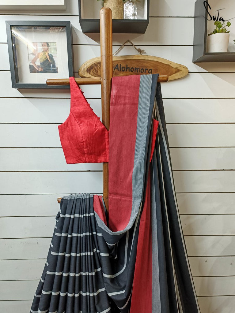 A lightweight, figure-flattering saree that’s made of pure cotton is just what your wardrobe ordered. The red-tinged floral accents on a background of the deepest navy blue make this saree truly memorable.