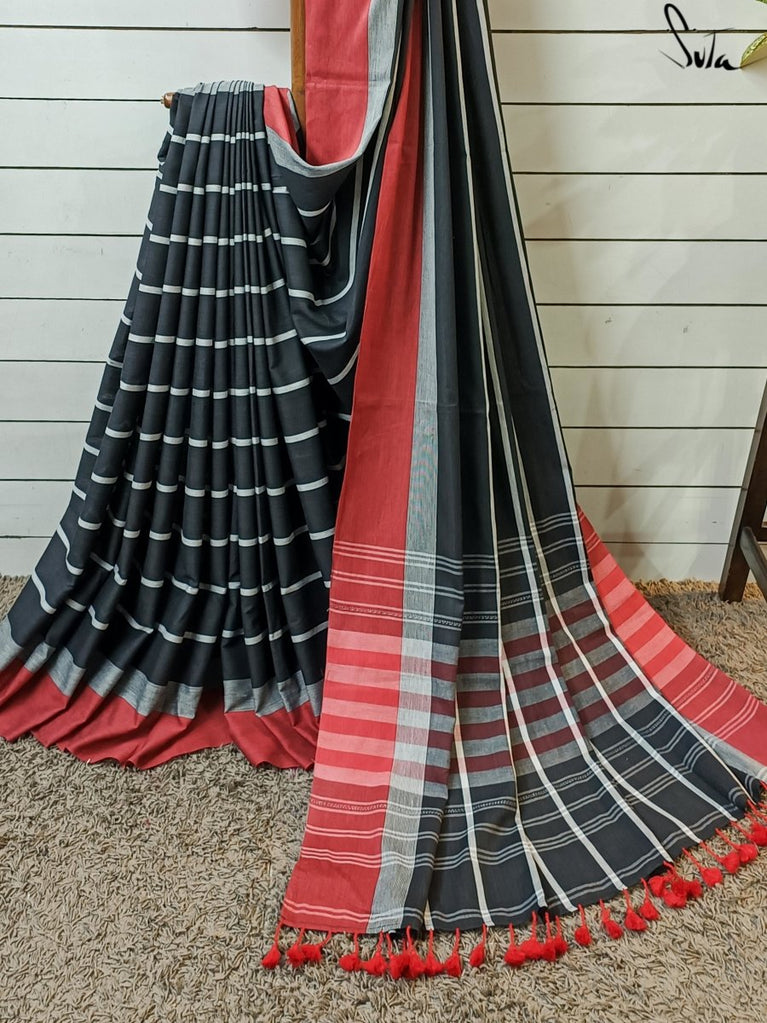 Suta’s ‘made in heaven’ mul cotton is also known as mul mul in West Bengal. The fabric is buttery soft and has a delicate beauty. Its weave is very fine and this lends a very fluid texture to the fabric, which makes draping it a breeze.These sarees are embellished with delicate zari detailing that enhances their elegance and adds a regal charm.