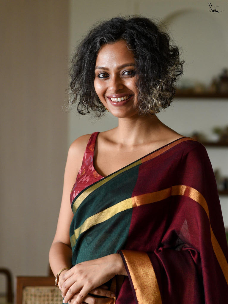 Note: Our mul sarees are slightly transparent, it’s the nature of the fabric and part of its soft, airy charm.