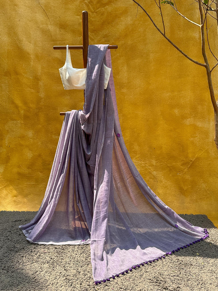 Cotton fabric dates back to some of the most ancient civilisations and it has a strong presence in the modern wardrobe as well. The softness and lightness of cotton combined with its strength and versatility makes it one of the most popular choices, especially for the Indian climate. We took this simple, elegant fabric and combined it with acrylic for that added sheen and voila! We love what we see and the saree falls so beautifully that it feels like second-skin!