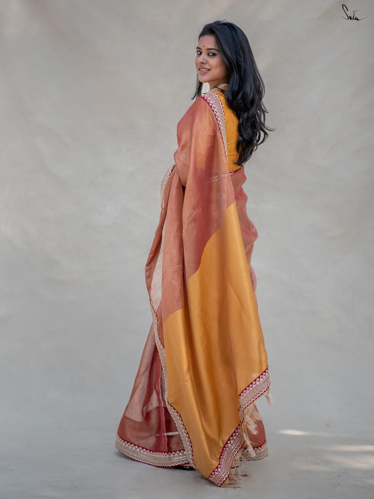 Step into the magic of Aurora Ascension, a saree that embodies the first light of dawn. Crafted from lightweight Linen Zari, this stunning piece features an embroidered border that adds a touch of glamour. Paired with a matching blouse piece, it’s the perfect ensemble to elevate your style. Let Aurora Ascension light up your soul and surroundings with its radiant beauty.