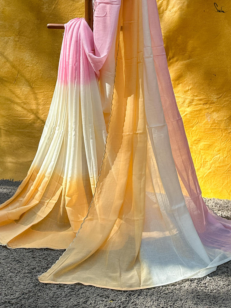 Note: Our mul sarees are slightly transparent, it’s the nature of the fabric and part of its soft, airy charm.