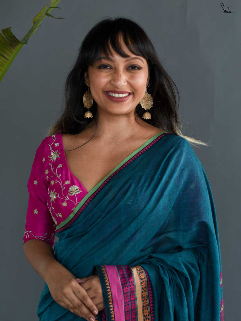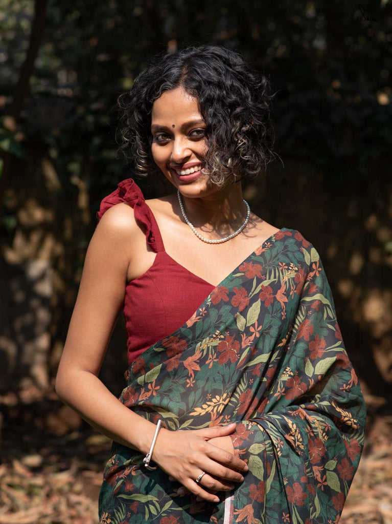 Note: Our mul sarees are slightly transparent, it’s the nature of the fabric and part of its soft, airy charm.
