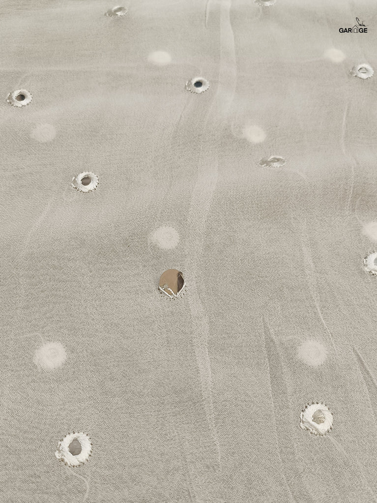 Viscose georgette, a combination fabric, is woven to perfect a sheer or semi-sheer material. It is light and perfect for occasions that require you to stay comfortable, feel light and soak in every moment of enjoyment. The material keeps you dry and is easy to care for, making it the perfect choice for tropical summers. The sheer effect lends a rich and sophisticated look.